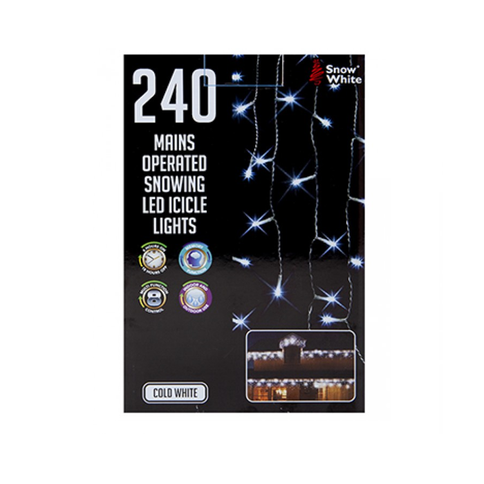 240 Led Snowing Icicle Lights Mains Operated 3.8m
