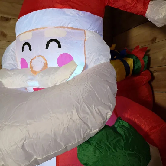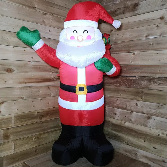 With its adorable, child-friendly design and bright LED lights, this 6ft decoration is perfect for both indoor and outdoor settings, attracting neighbours and guests alike. Complete with blower, pegs, and ropes, this inflatable Santa carrying his present sacks is ideal for adding festive charm to any space.