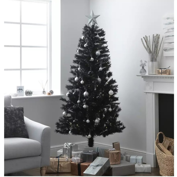 This striking black Christmas tree adds a sophisticated touch to any space. Perfect for those seeking a contemporary twist on tradition. Its bold colour compliments a wide range of decoration styles, whether you prefer cool or warm tones from silvers to golds. Crafted from high-quality materials, this tree is built to last, ensuring it will be the centrepiece of your celebrations for years to come.