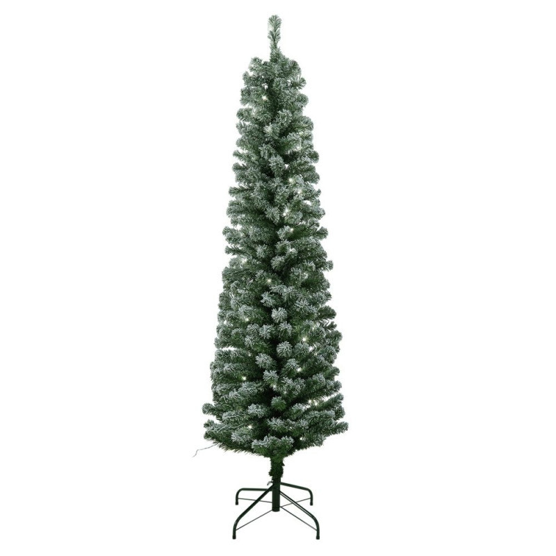 6Ft Pre-Lit Snowy Artificial Slim Christmas Tree