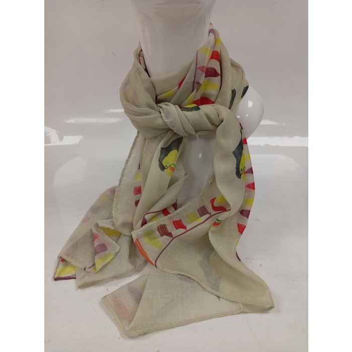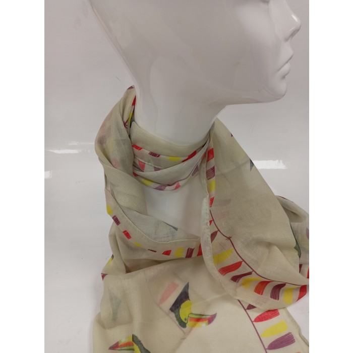 The Scarf Giraffe Toucan Design Ladies Lightweight Scarf is likely a vibrant and stylish accessory featuring playful patterns of toucans. Lightweight scarves like this one are often made from materials such as cotton or chiffon, making them perfect for layering without adding bulk.