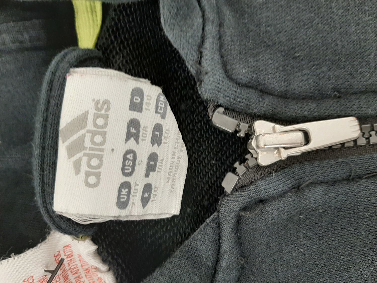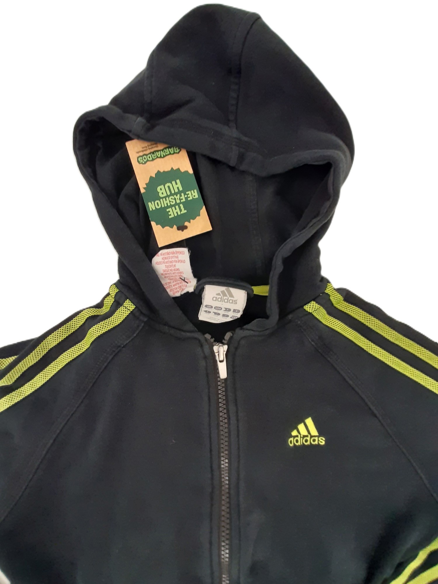 Adidas Boys Zip Up Hoodie Black W/ Green Stripes Size 9-10 Yrs Pre-Loved