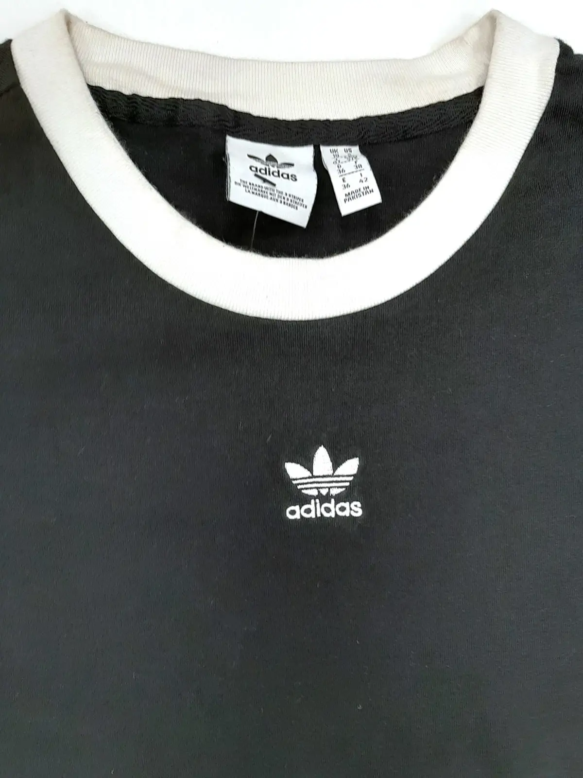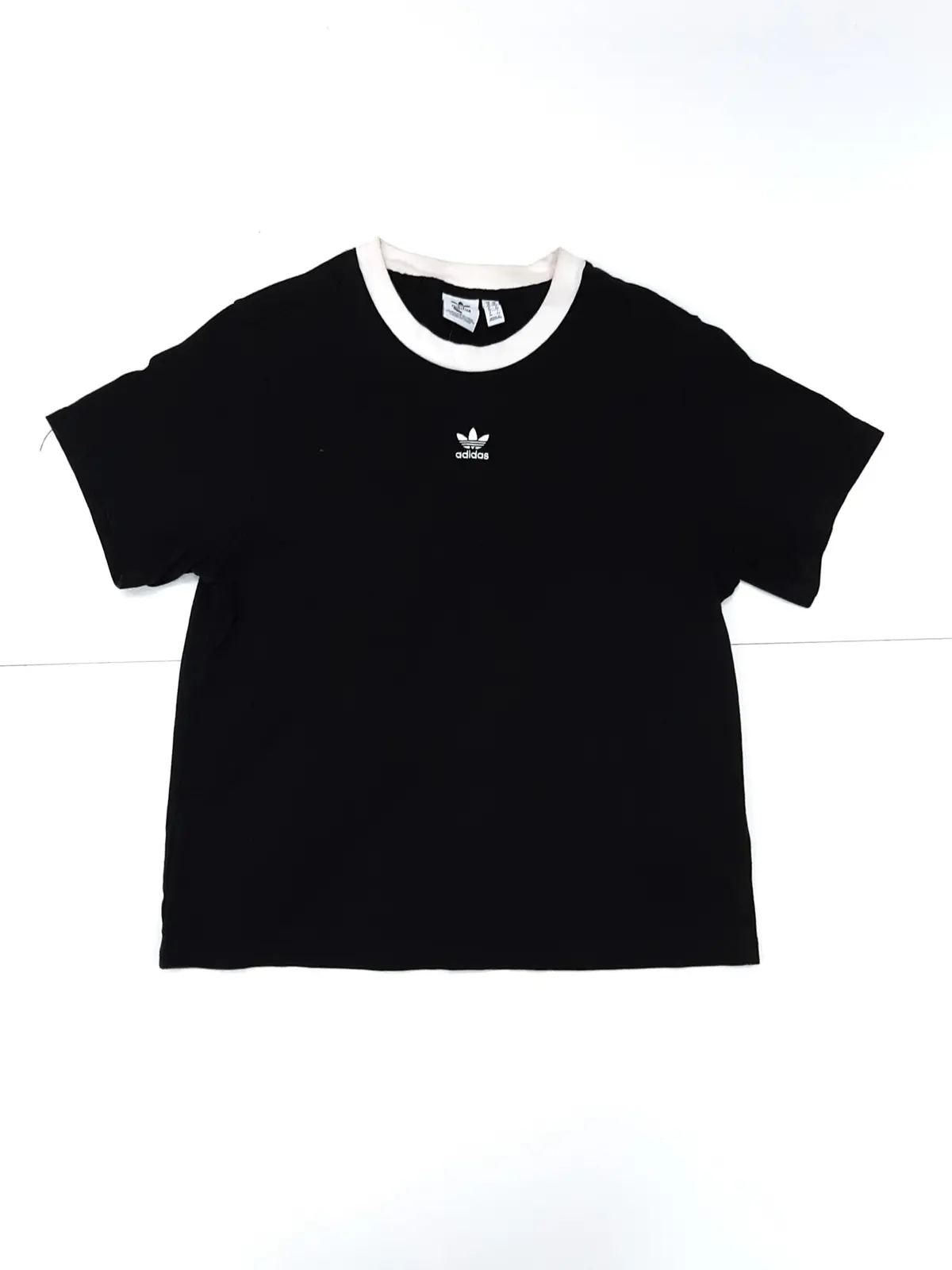 Stay sporty and stylish with this Adidas Originals Three Stripe T-Shirt, crafted from soft 100% cotton for breathable comfort. Finished in classic black with a white collar, it’s a versatile wardrobe staple that can be worn casually or styled up with layers.