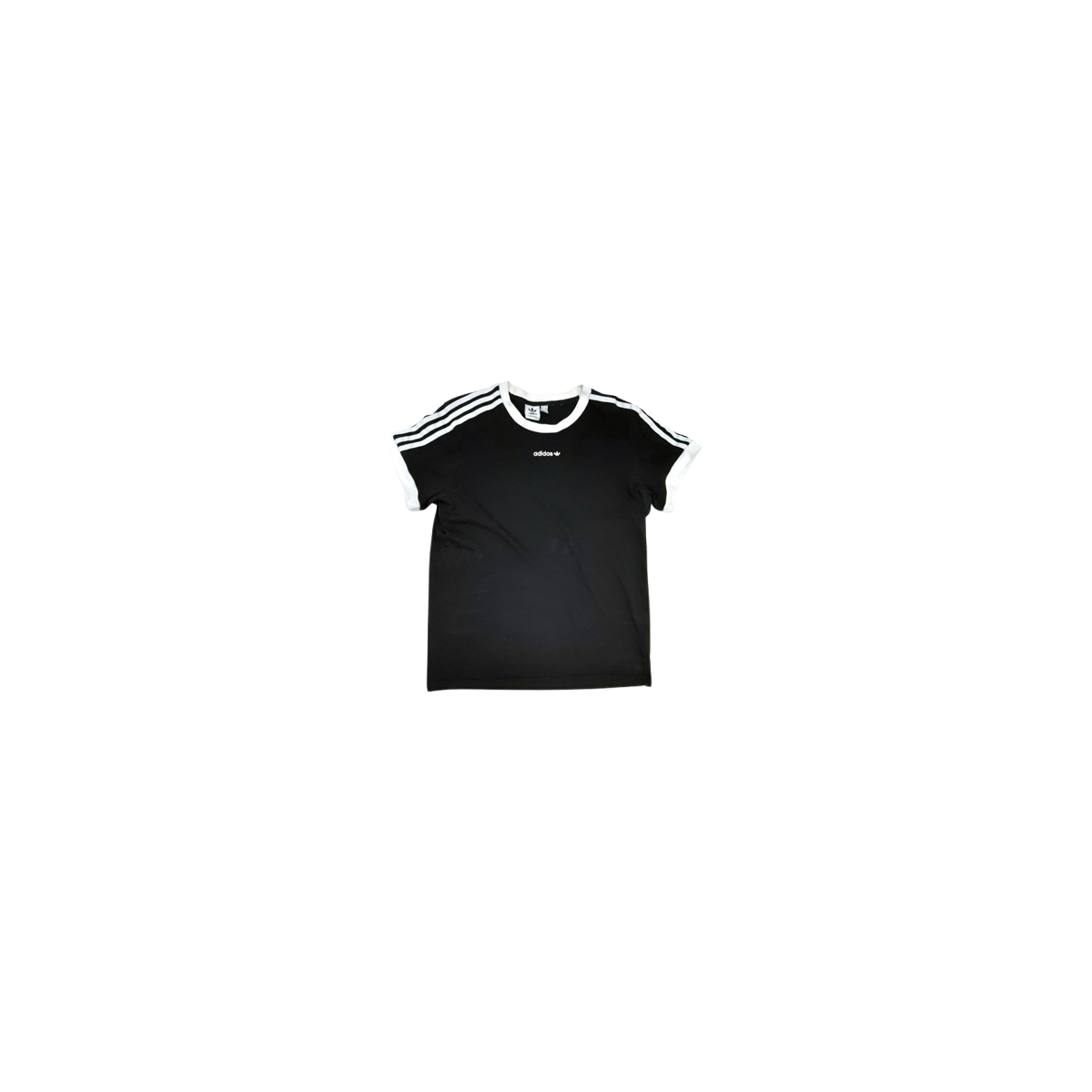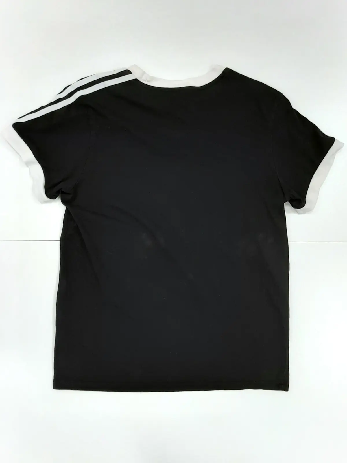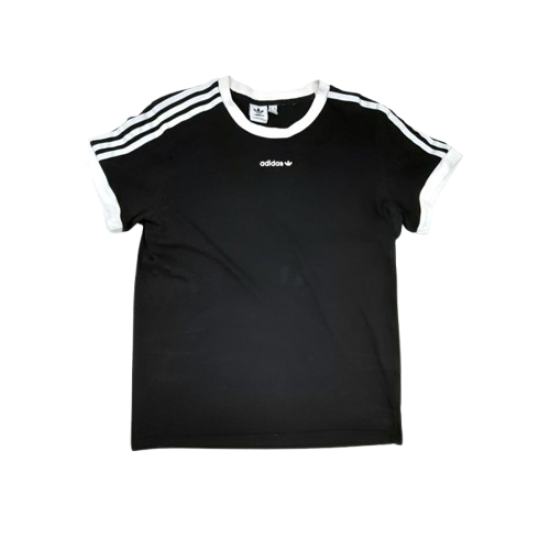Adidas Originals Women's Black & White Three Stripe T-Shirt Size UK 10 Pre-Loved Re-Fashioned