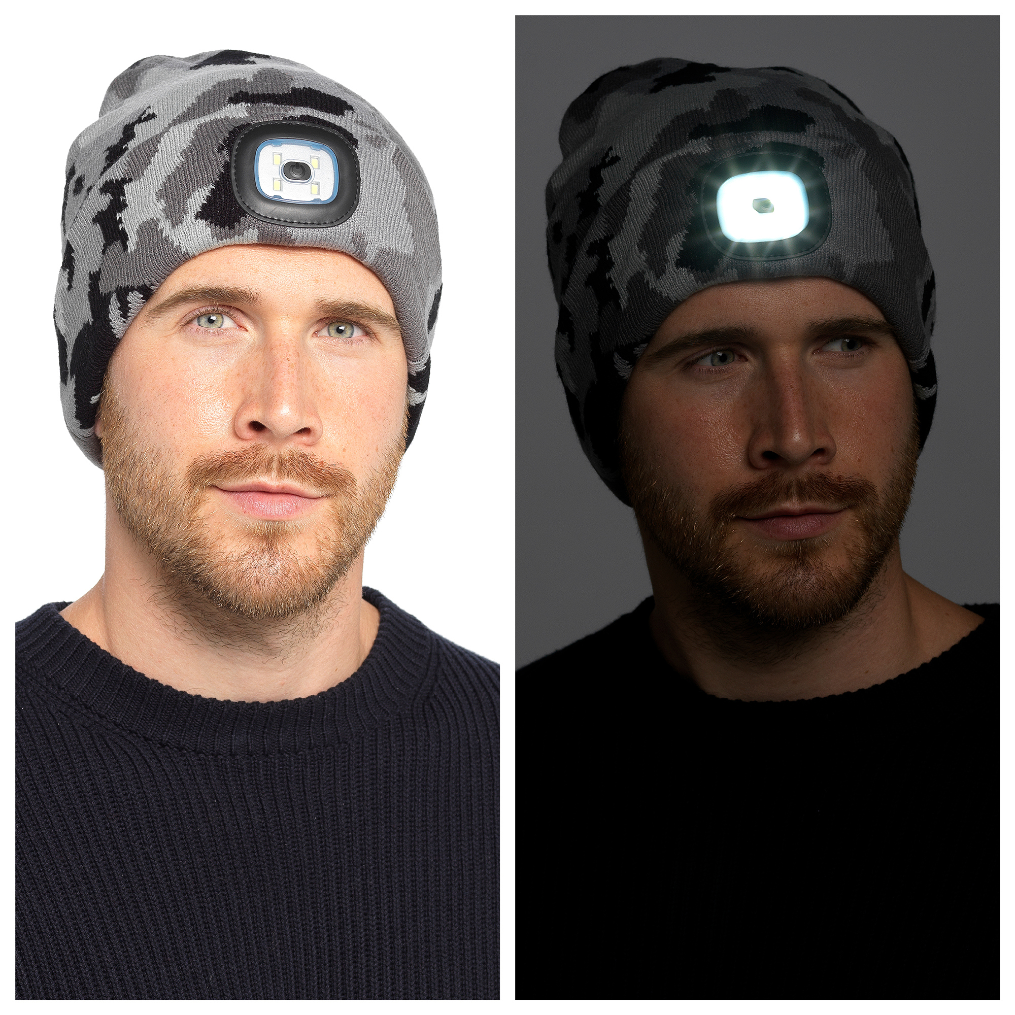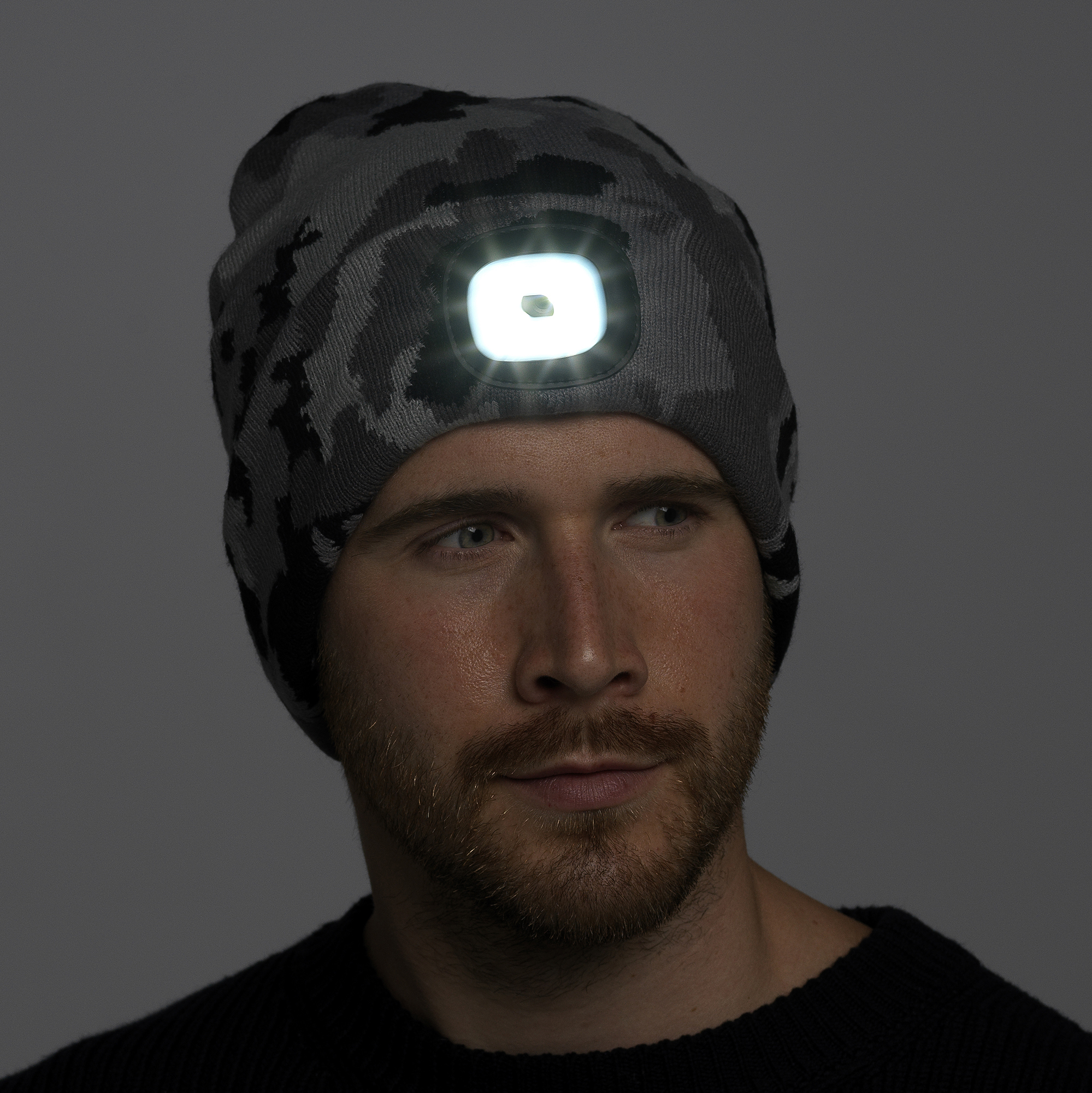Adults Grey Camo LED Beanie Hat