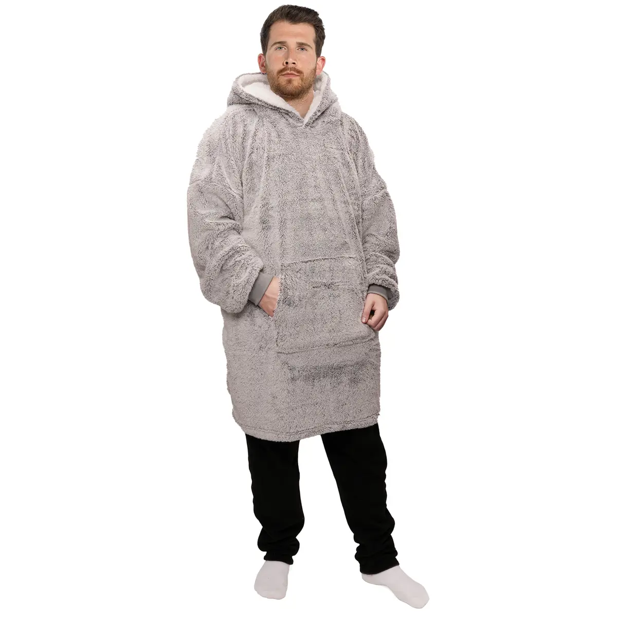Adults Shaggy Fleece Hoodie in Grey