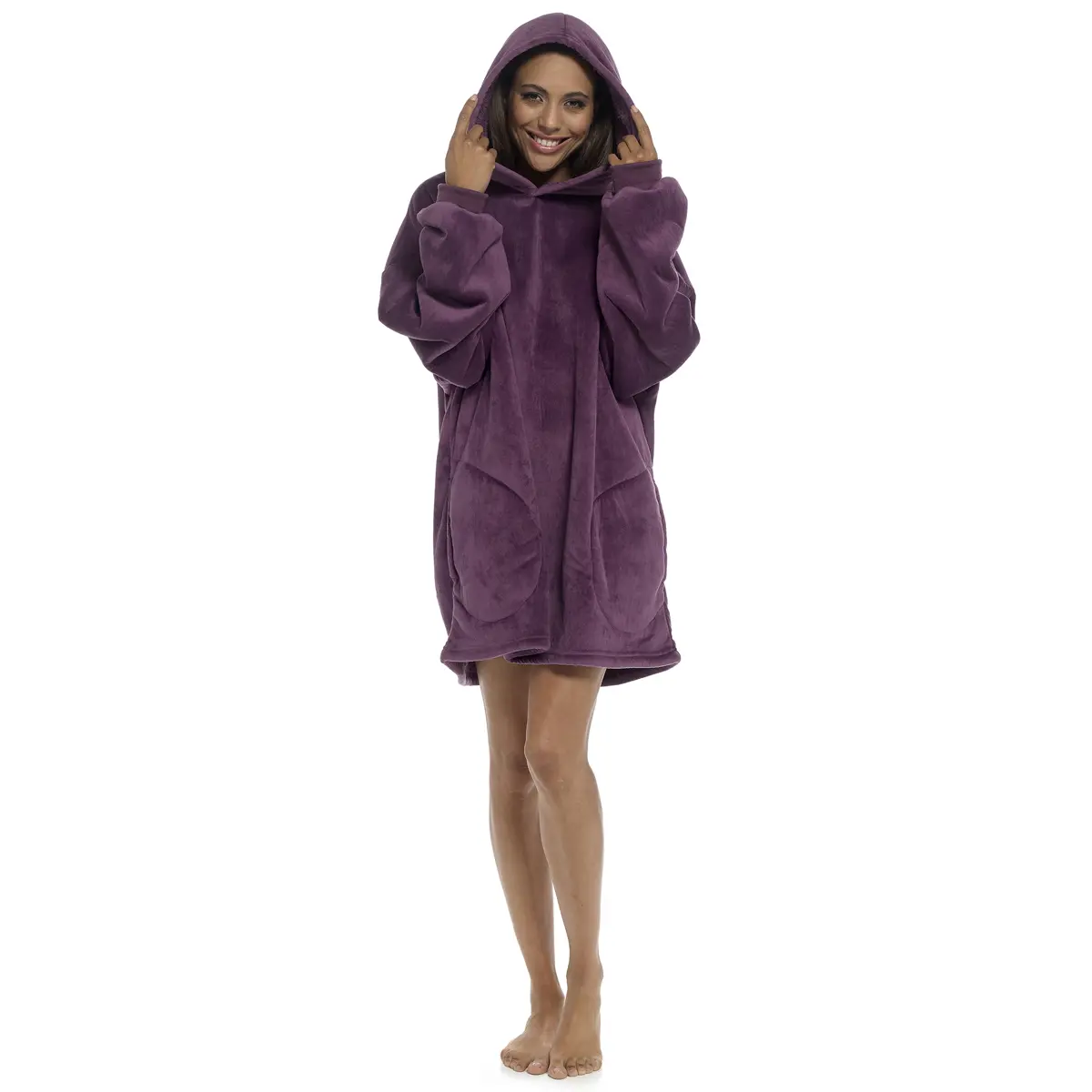 Adults Soft Touch Flannel Fleece Snuggle Hoodie - Deep Purple