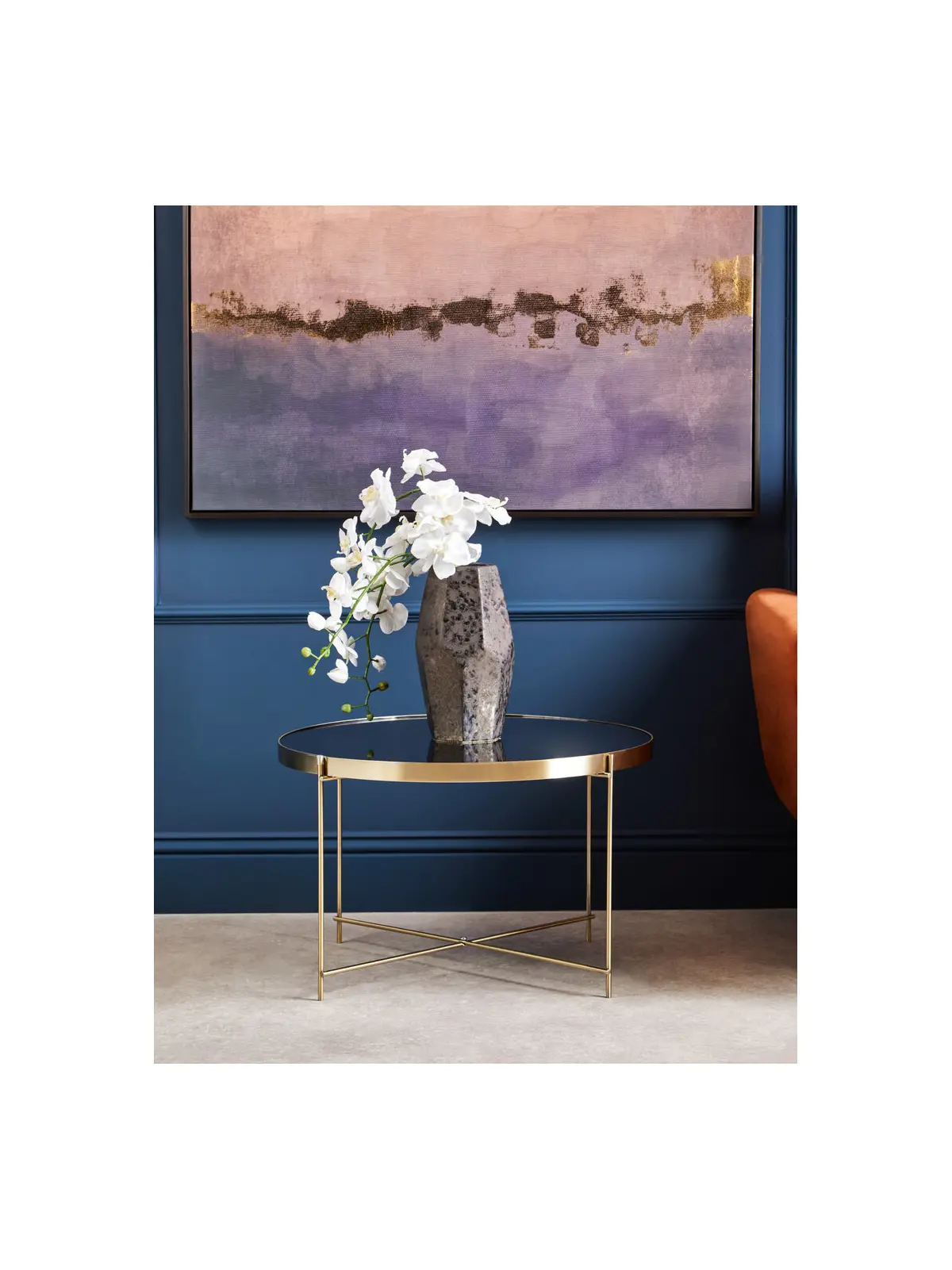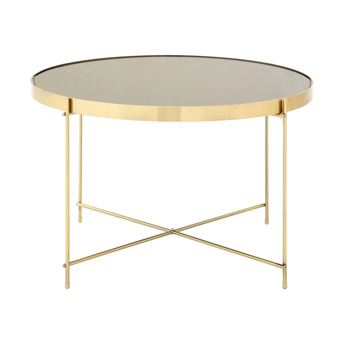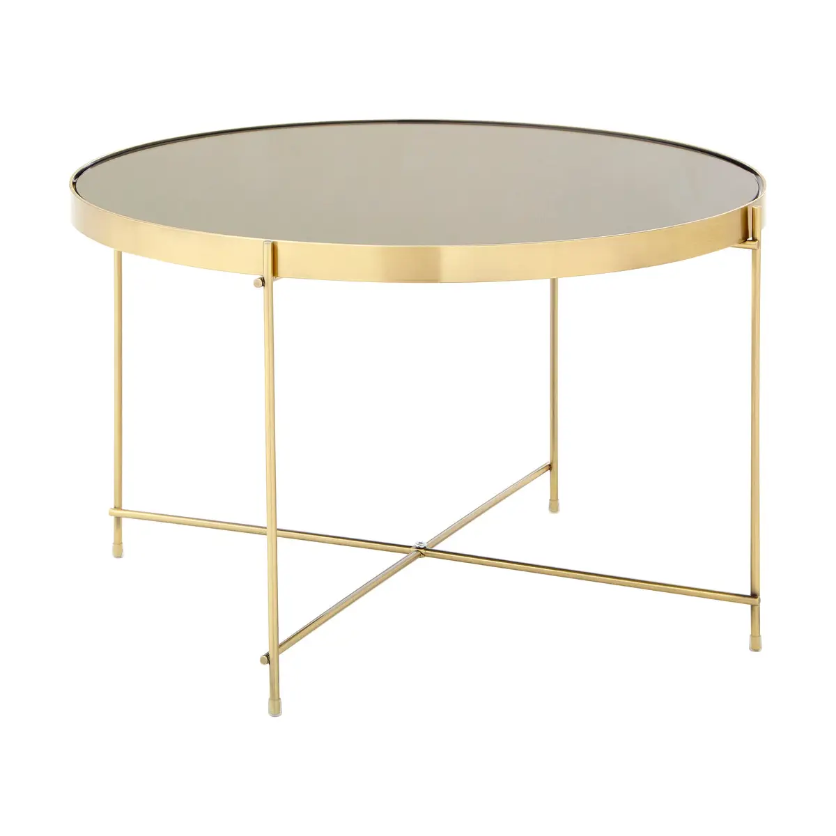 The mirrored glass tabletop sits within a brushed bronze metal band and is supported by a delicate lattice structure and slim legs that give the table a light, contemporary feel. A second lattice at the base adds visual interest while enhancing the table’s modern aesthetic, making it perfect beside a sofa or armchair.