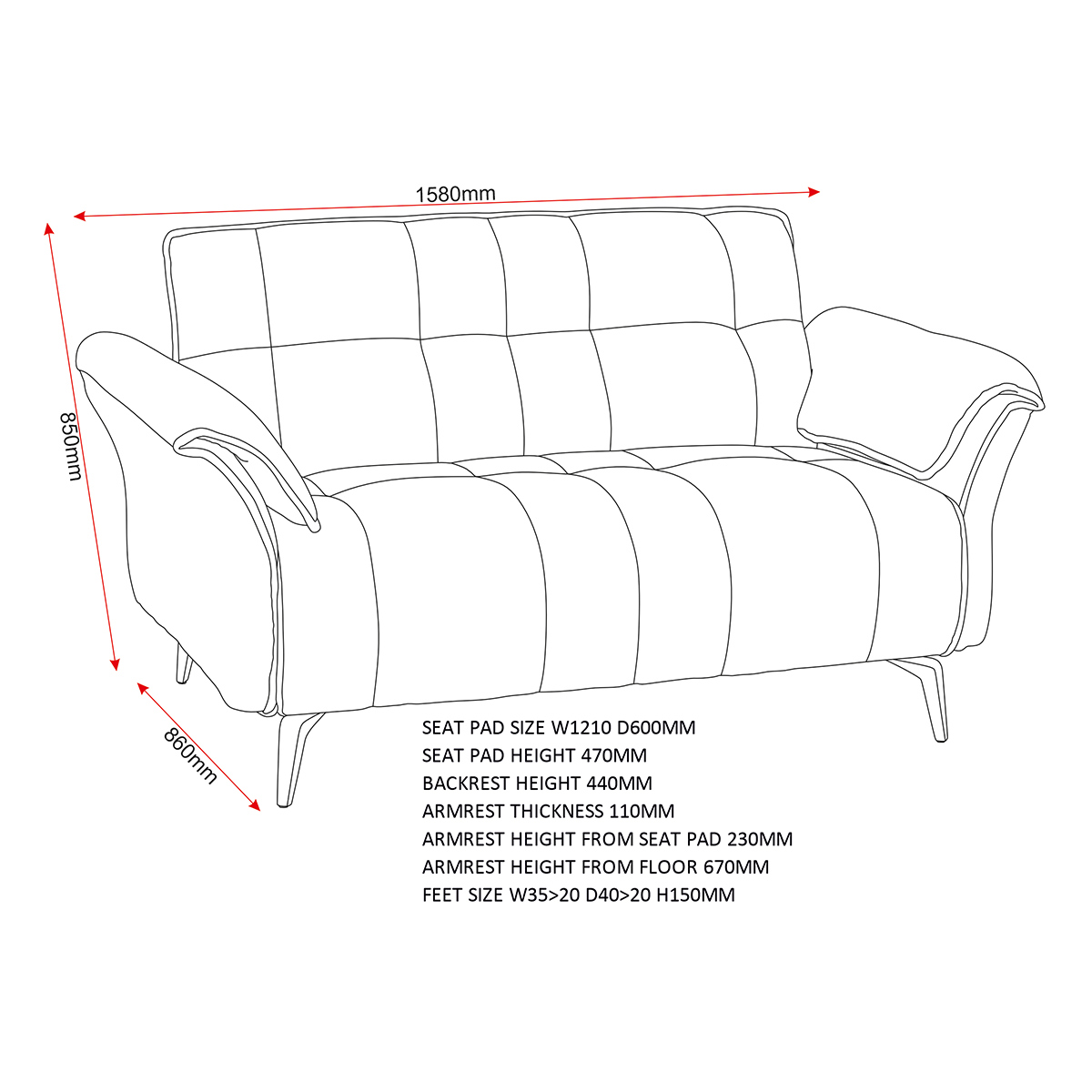 Assembled Dimensions: Width: 158 x Depth: 86 x Height: 85 (cm)