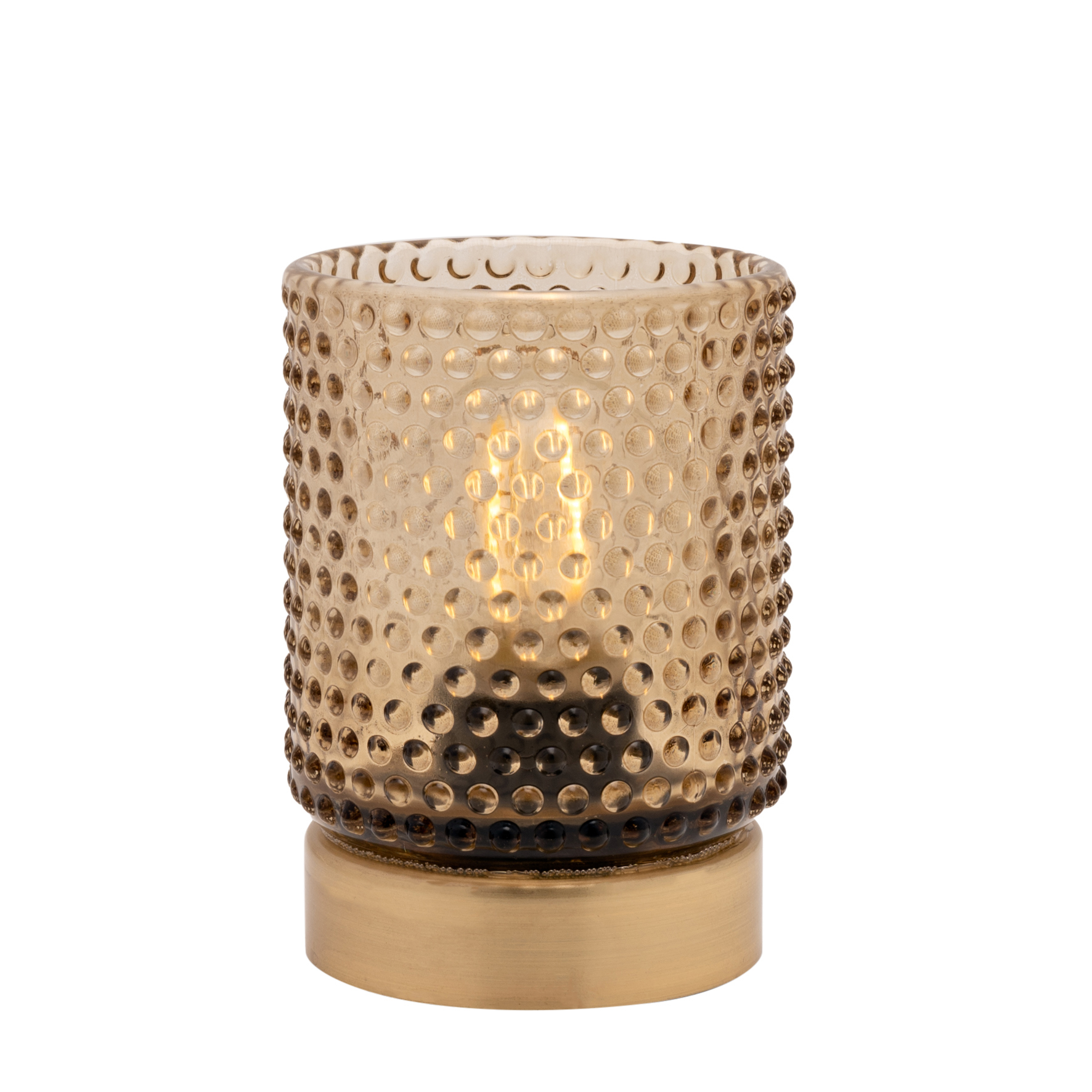 An amber glass cup with LED bulb light by HESTIA®.