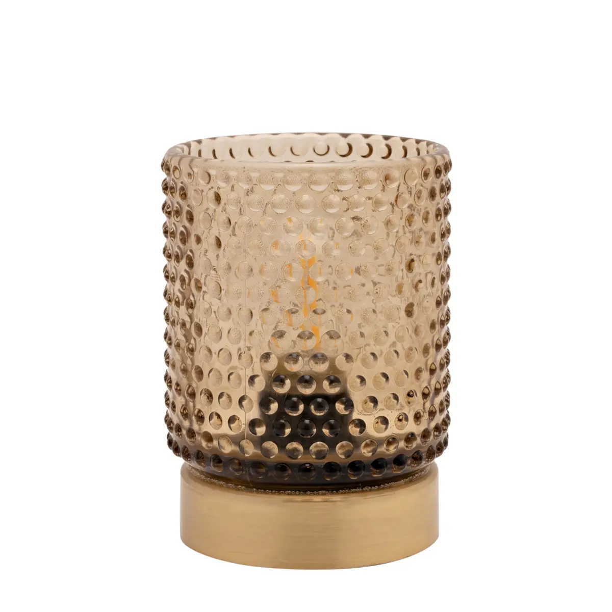 An amber glass cup with LED bulb light by HESTIA®.