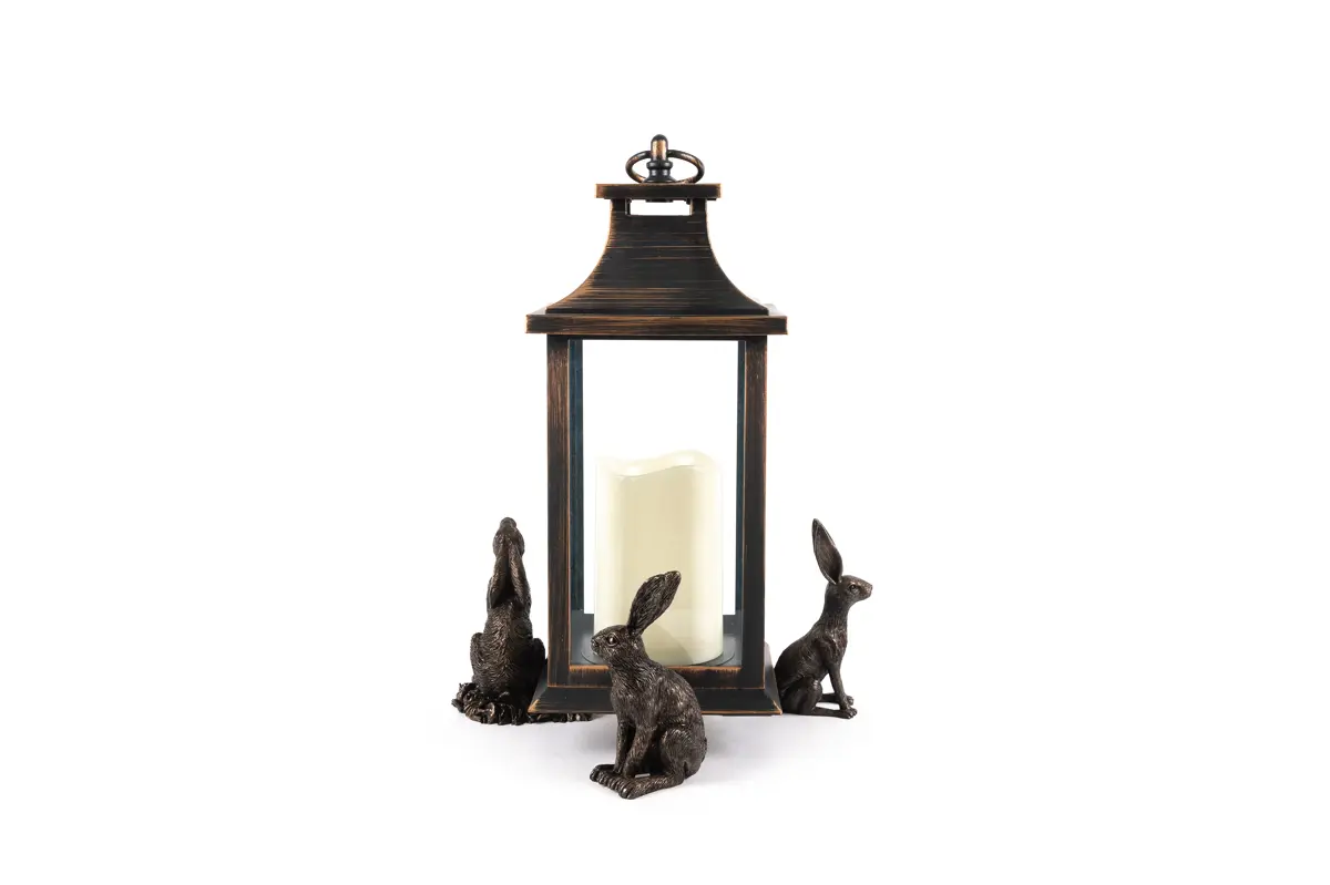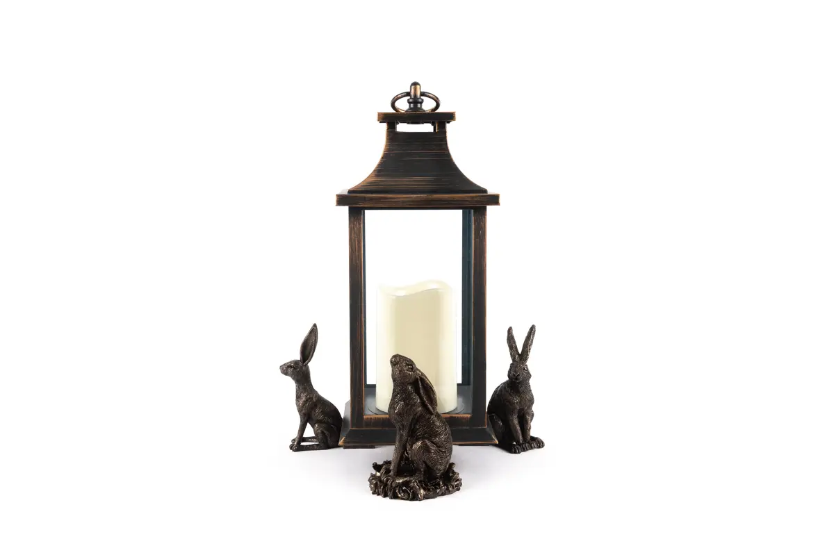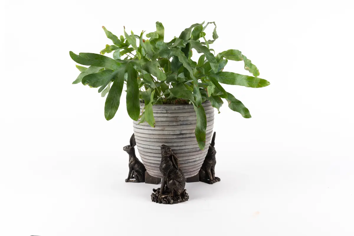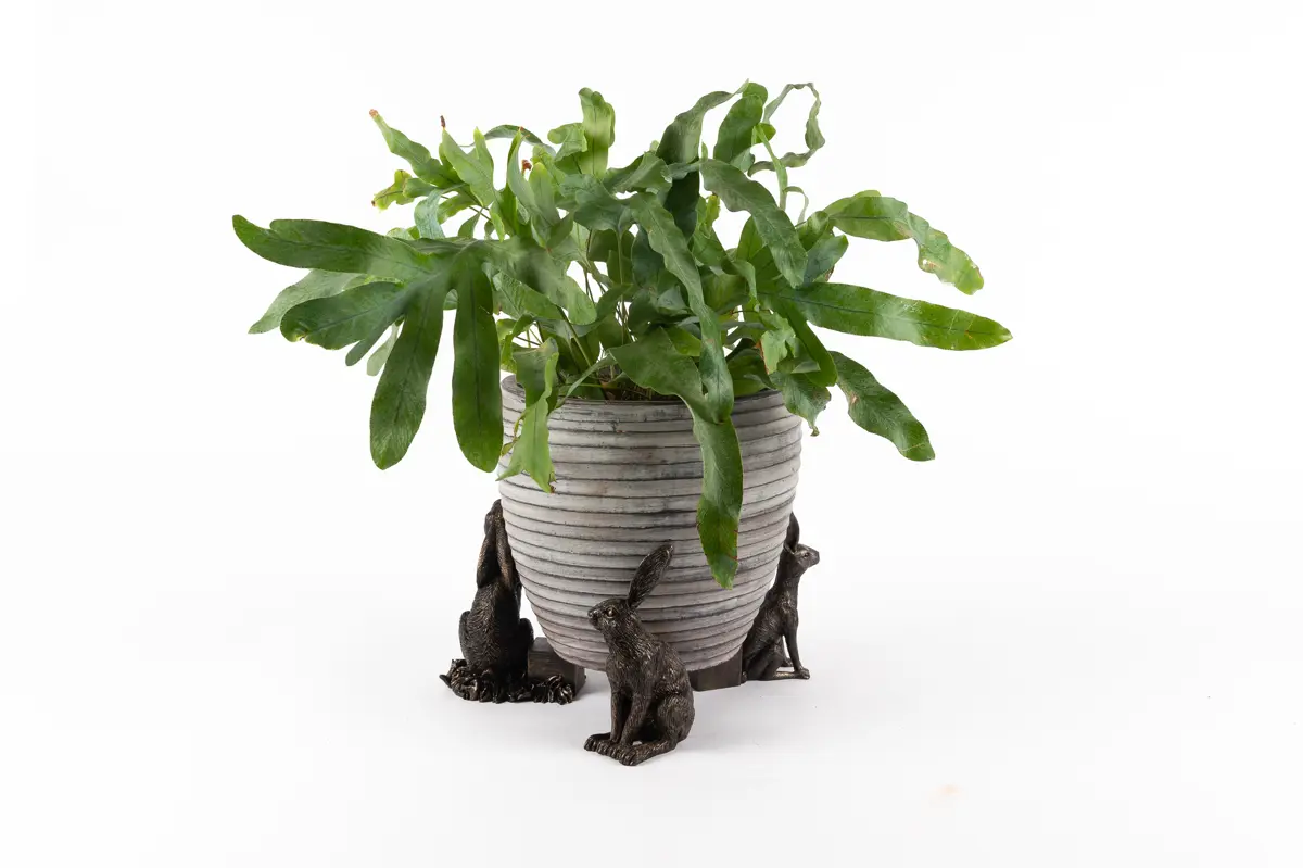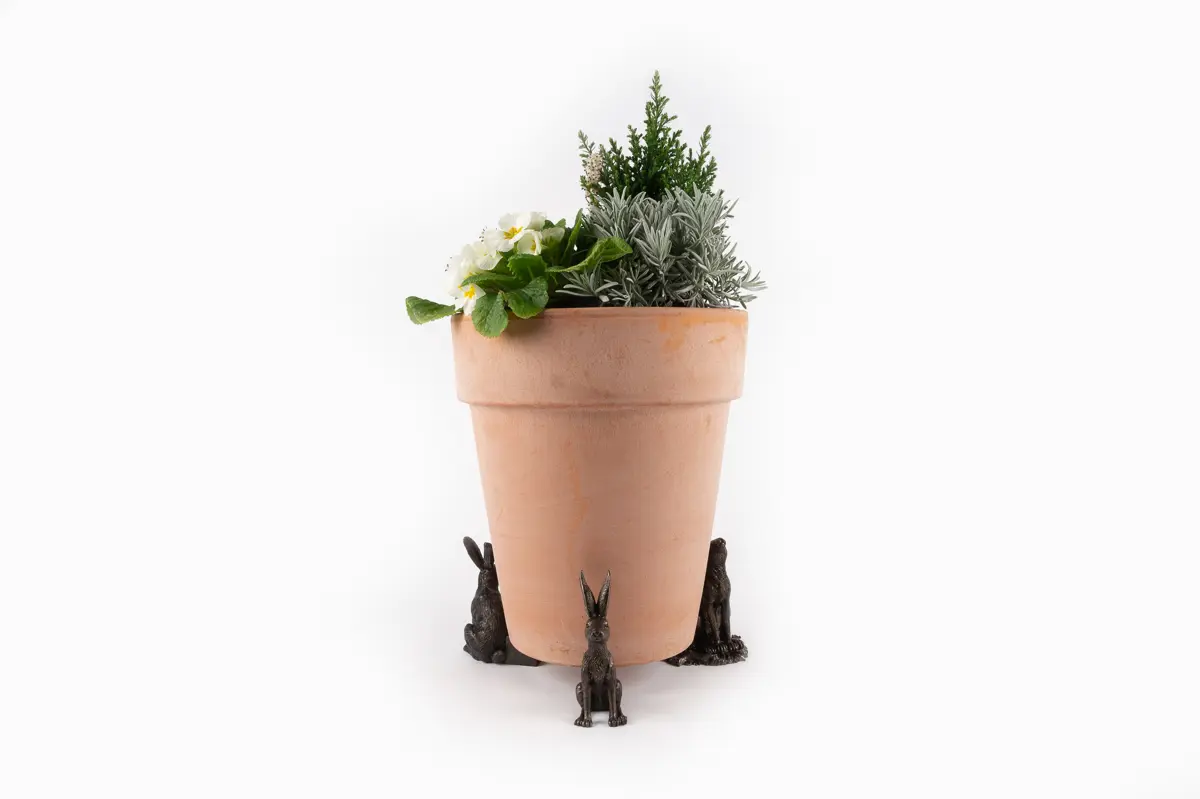 Ultra-practical with a sophisticated edge – that’s exactly what Jardinopia’s plant pot feet deliver. Comprising a drove of hares in varying positions – moon gazing, sitting and vigilant – these dapper creatures certainly bring an usual aesthetic to this funky set. And finished in an antique bronze, they’re the epitome of timeless country style. Simply place inside or outside for use all year round. Made from a hard-wearing poly resin, you can be sure the design is protected from frost and UVA damage. Plus, your plants will love this handsome trio as they prevent waterlogging, improve root growth, and deter unwanted pests!  Create that sought-over country living aesthetic with Jardinopia’s Sitting Hare Plant Pot Feet. Finished in a handsome antique bronze, they deliver bundles of undeniable charm while boasting practical qualities. Place them underneath your pots to prevent waterlogging, deter bugs and minimise staining on your patio. Made from crushed stone and poly resin, they’re both frost-proof and UVA resistant – ideal for outdoor use. Or you can use these beauties to add a decorative element to homeware pieces, such as candle lanterns. Wherever you choose to use yours, they’re sure to revamp your interior or exterior spaces.