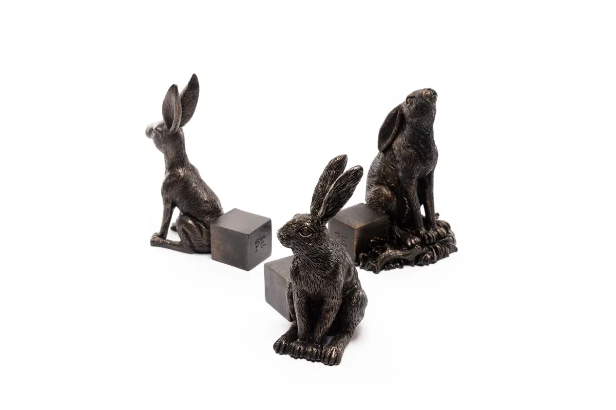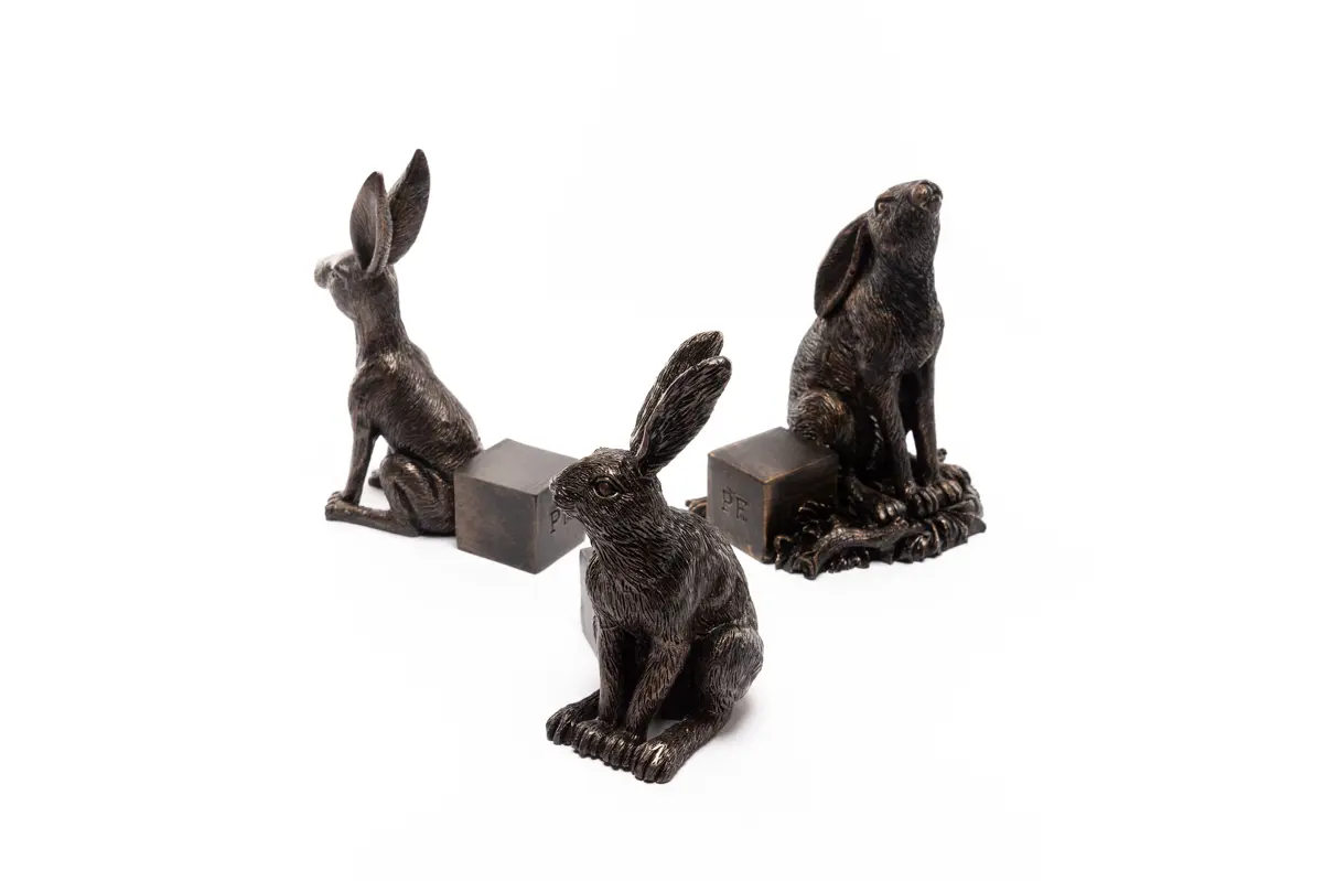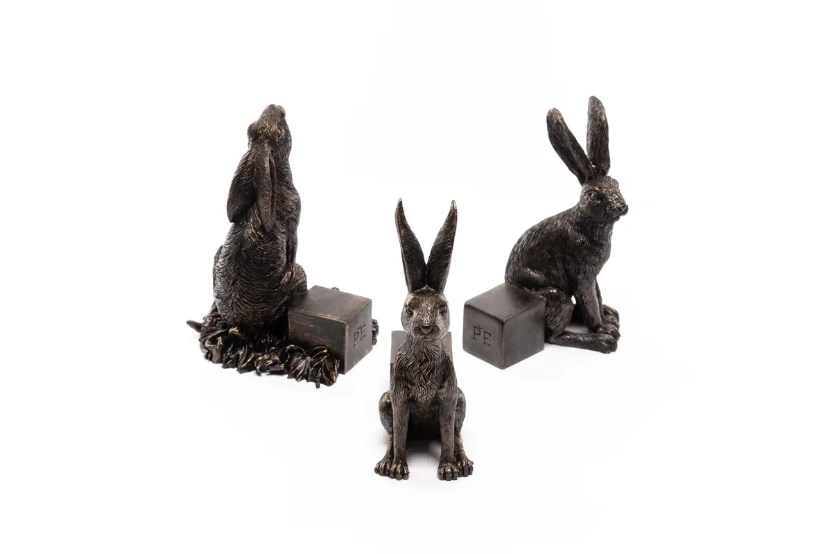 Antique Bronze Large Drove of Hares Potty Feet Set of 3
