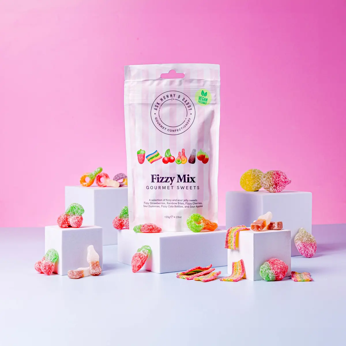 • Includes a mix of Sour Apples, Fizzy Strawberries, Fizzy Dummies, Fizzy Cherries, Rainbow Bites, and Sour Fizzy Cola