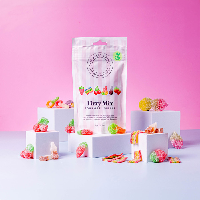 Enjoy a burst of fruity fizz with the Ask Mummy & Daddy Vegan Fizzy Mix Giant Sharing Pouch — a vibrant selection of the brand’s bestselling gummies. Packed with six delicious fizzy flavours, this mix makes the perfect treat for sharing or indulging solo.