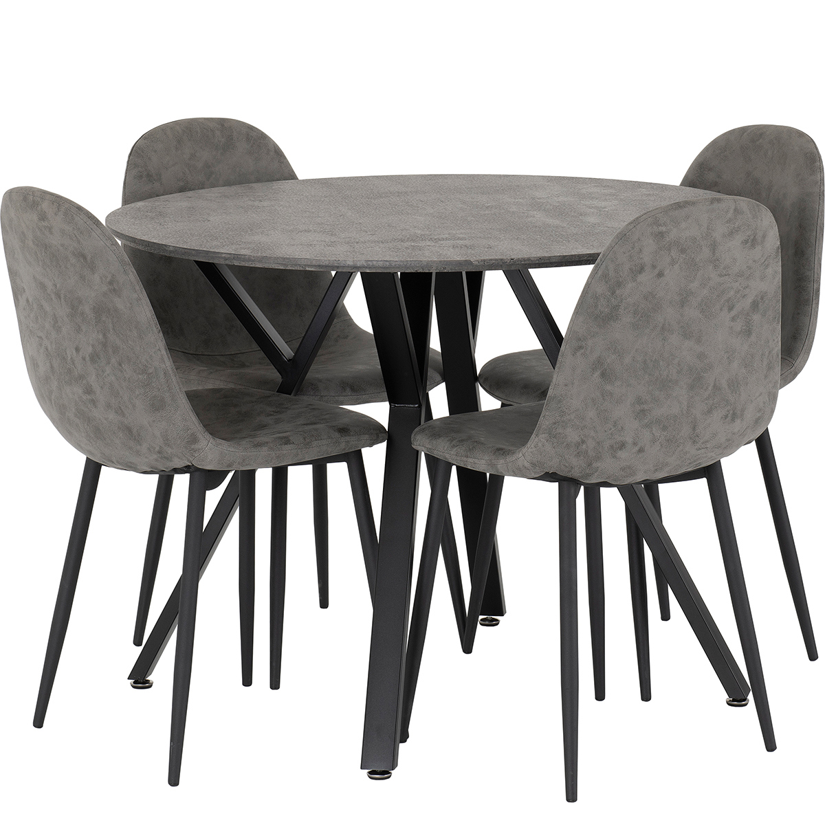 The Athens Round Dining Set combines bold modern style with practical functionality, making it the perfect centrepiece for contemporary dining spaces. Featuring a concrete-effect tabletop and sleek black metal legs, this set exudes urban sophistication while offering durability for everyday use. The set includes a round dining table and four matching chairs, each designed with a contoured seat and soft upholstery for comfort. Built from sturdy metal and manufactured wood, the Athens Dining Set is ideal for family meals, entertaining guests, or creating a stylish dining nook. Assembly is required, and all hardware and instructions are included for a hassle-free setup.
