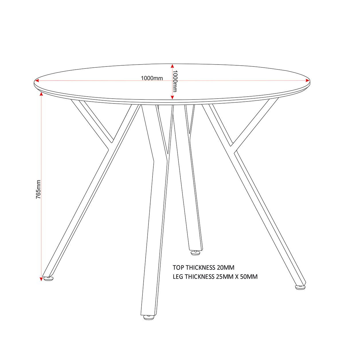 Table Assembled Dimensions: Width: 100 x Depth: 100 x Height: 76.5 (cm)