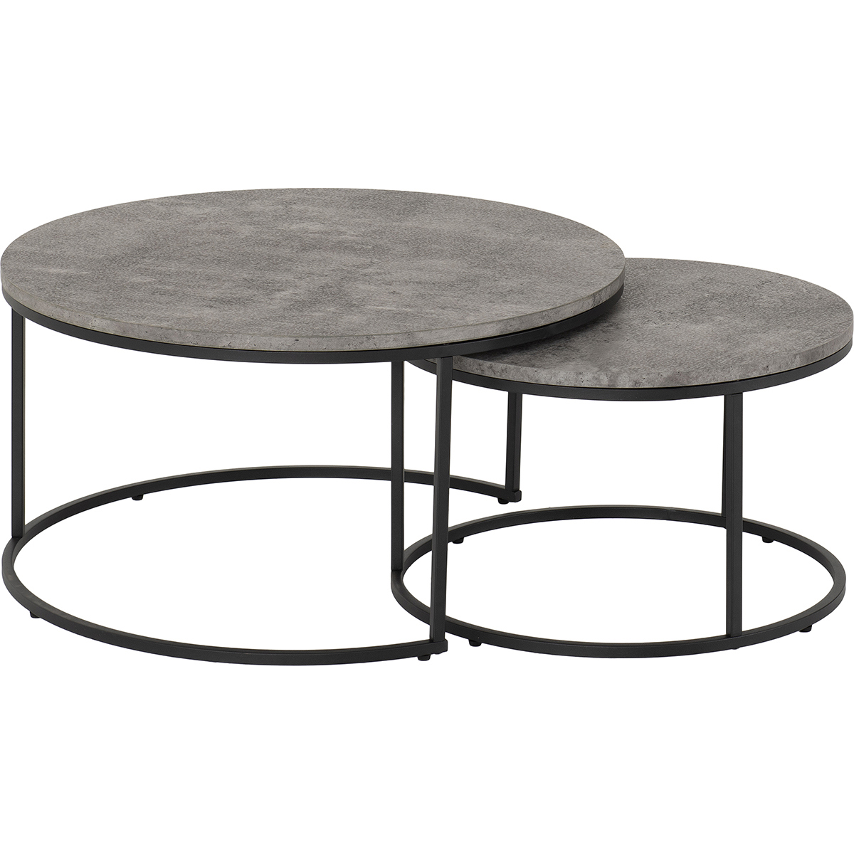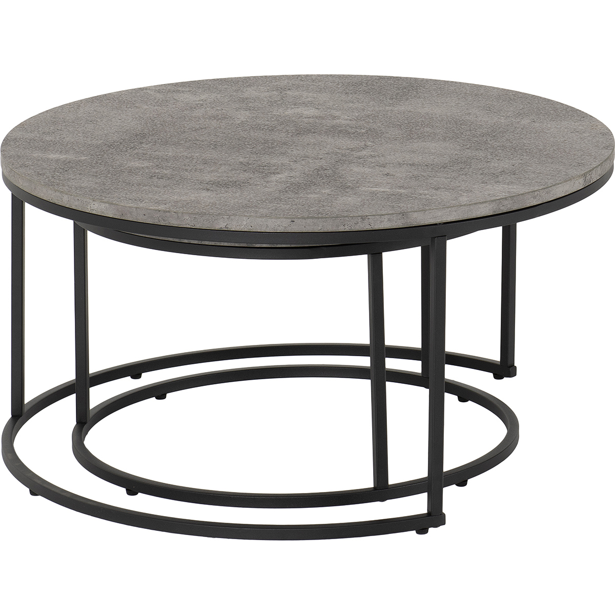 "The Athens Round Coffee Table Set brings bold, urban style to your home with its striking concrete-effect tabletops and sleek metal frames. This two-piece set is perfect for design lovers who appreciate modern aesthetics and versatile functionality. Use the tables together in a tiered arrangement for a contemporary statement piece or separate them throughout your home to add stylish surface space wherever you need it. Combining durability with a minimalist look, the Athens set is ideal for living rooms, lounges, or open-plan spaces.