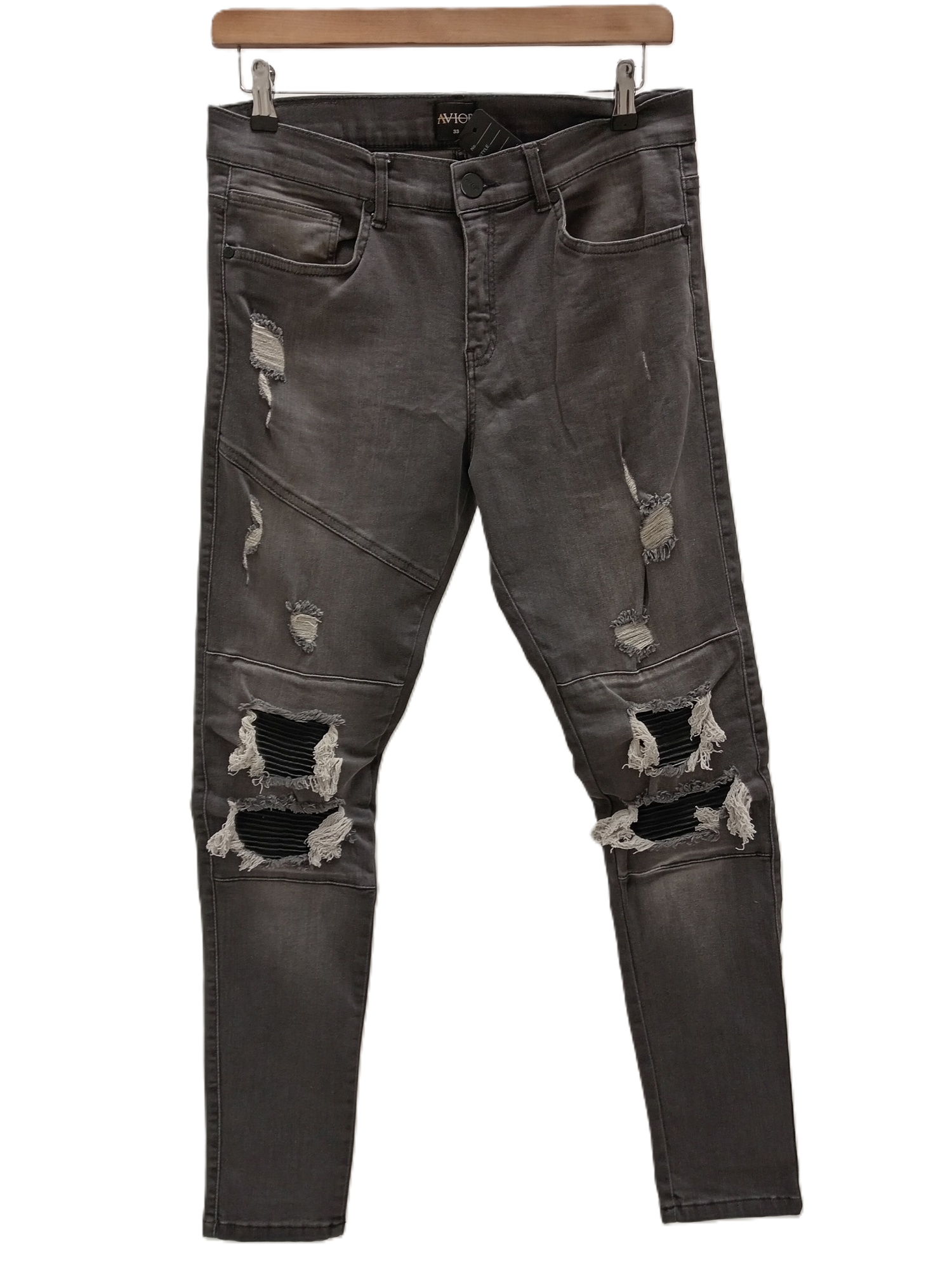Avior Men’s Grey Zip Up Skinny Faded Distressed Jeans