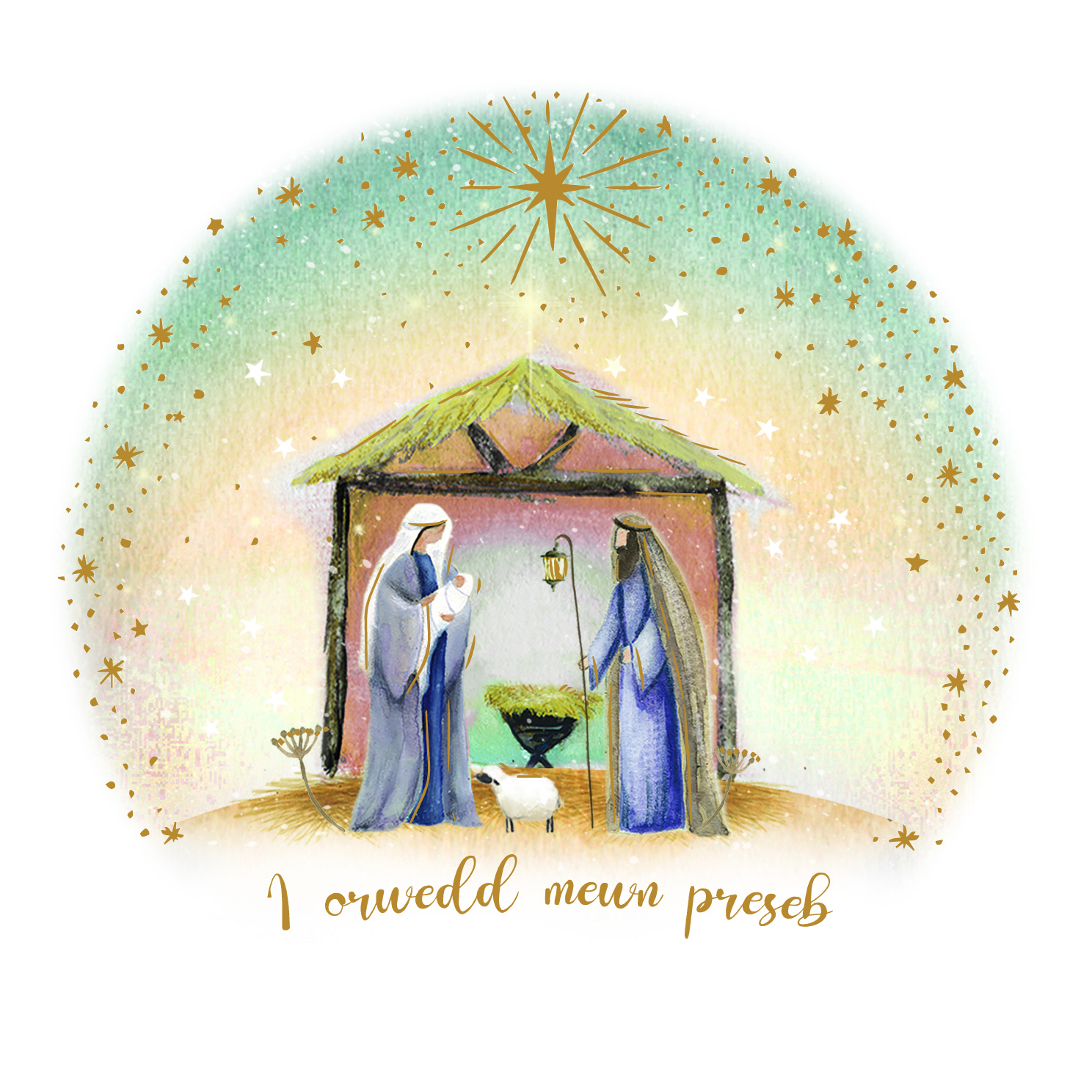 Away In A Manger Welsh Charity Christmas Cards Pack of 10