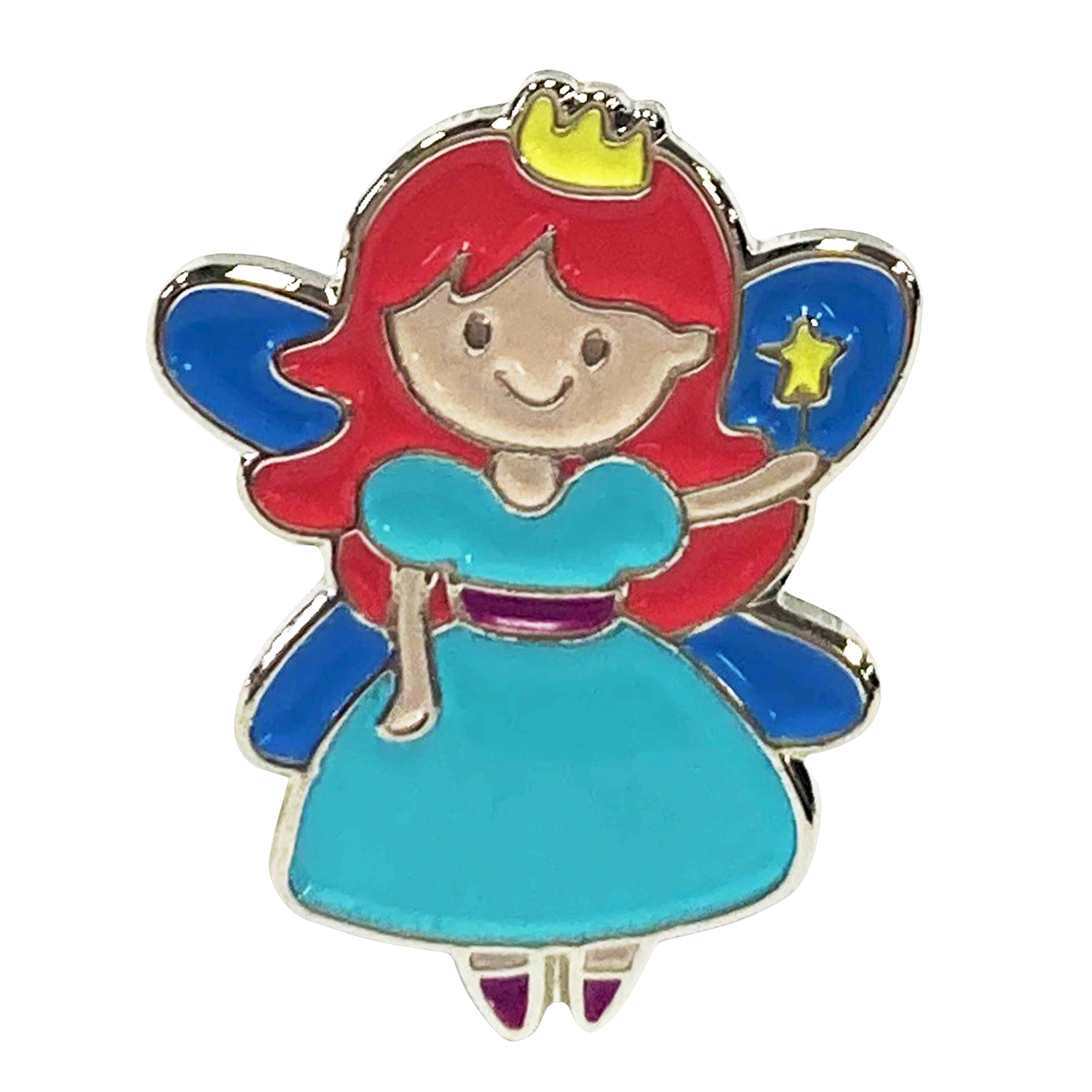 Barnardo's fairy design pin made from stamped iron with a nickel plate. Soft pastel enamel infills in 7 assorted colours. Butterfly clutch fastening. Exclusive to Barnardo's. Measures approx. 3cm Nickel plated.