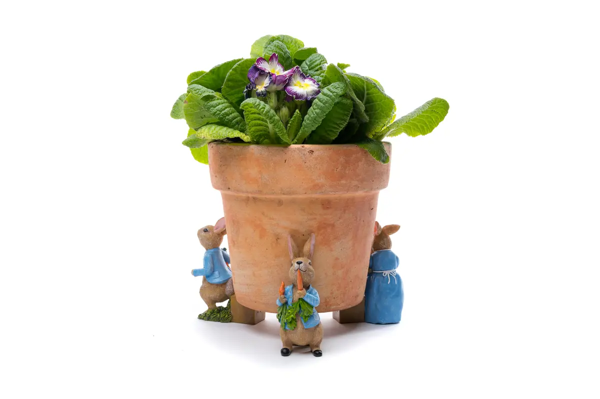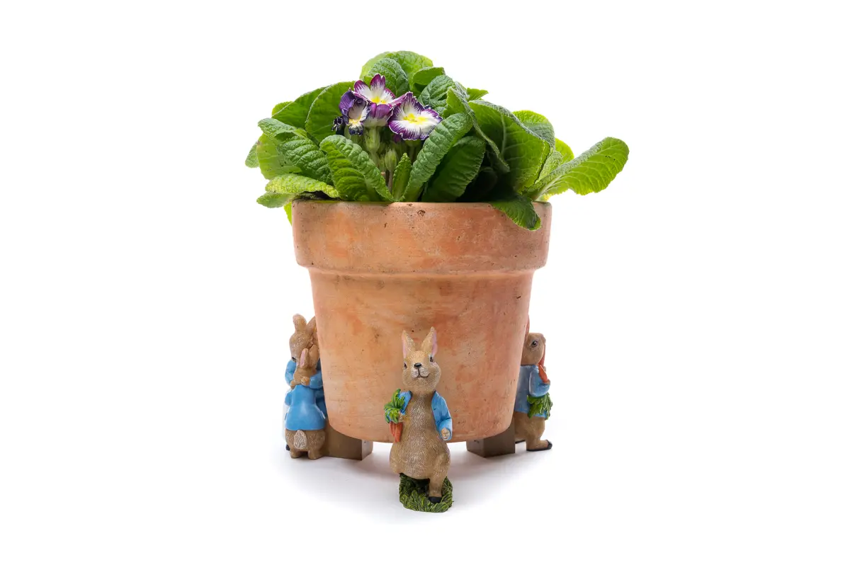Are you a lover of Benjamin Rabbit? Designed to fit any width and any shape of pot, these sweet planter accessories take the weight off your pots. With three adorable designs, expect to find Benjamin in a tam-o'-shanter hat, Benjamin with vegetables and Benjamin shopping. Whether you add them to indoor or outdoor plant pots, this classic character certainly brings a unique edge to your space. Handmade and hand-painted to withstand frost and sunlight, they’ll also never lose their charm!