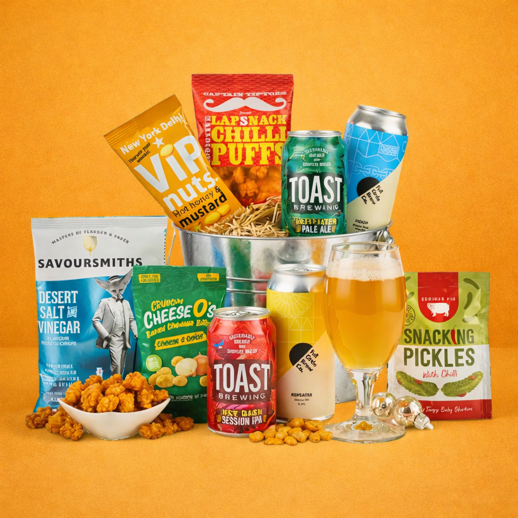 Celebrate the craft of great brewing with the Beer Lovers Bucket of Beer Gift Hamper – the ultimate treat for ale enthusiasts. This unique hamper combines a selection of refreshing craft beers with savoury snacks for the perfect pairing, all presented in a reusable galvanised bucket for a fun and practical gift. Ideal for birthdays, Father’s Day, or a weekend get-together.