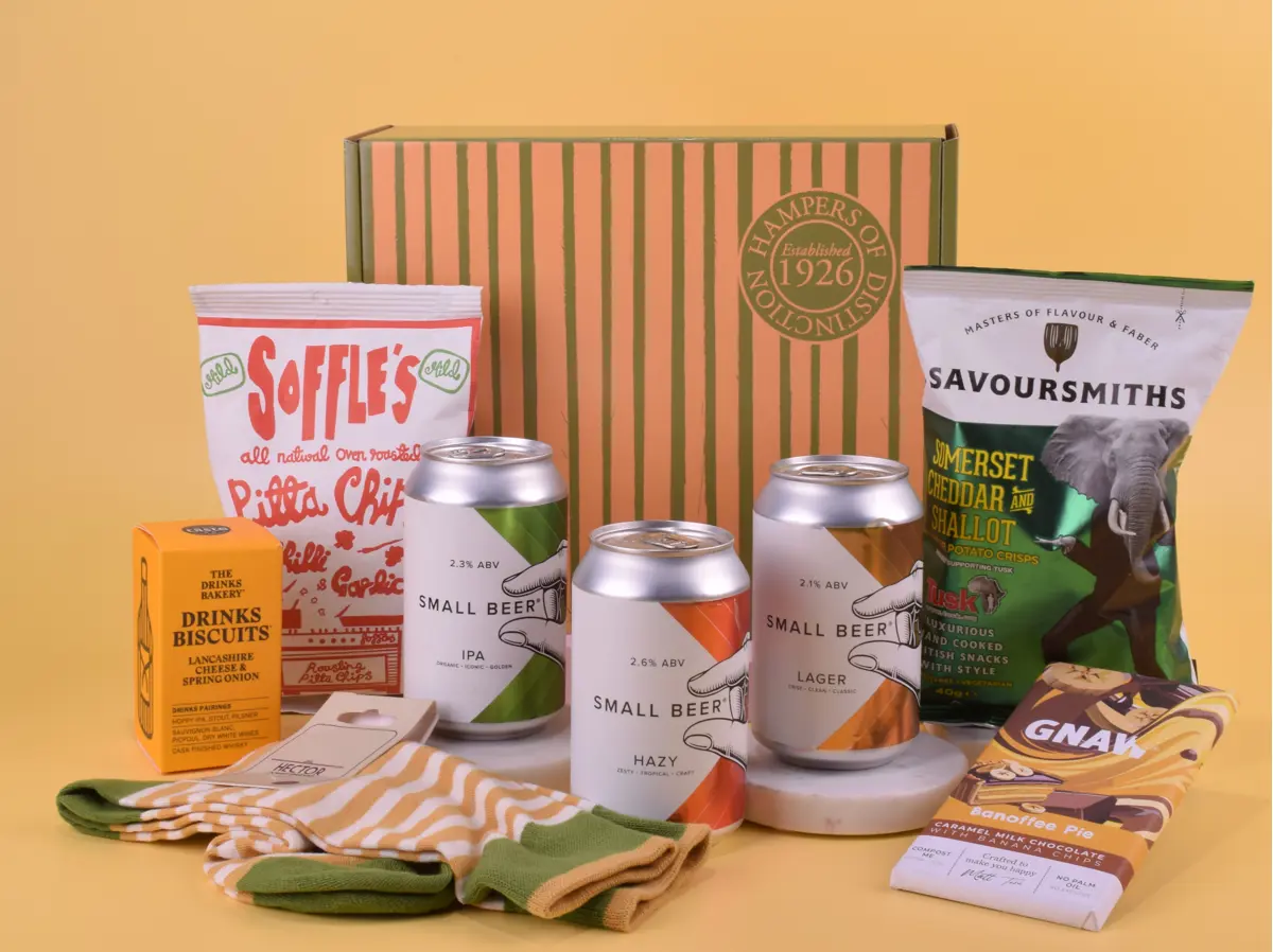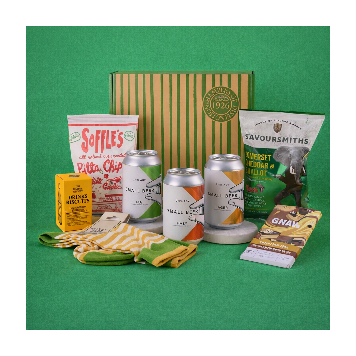 Featuring a trio of Small Beer Co brews alongside savoury snacks, sweet treats, and a cosy pair of men’s stripe socks, everything comes beautifully presented in a gift box. It’s a perfectly balanced mix of craft beer, nibbles, and little luxuries — ready to enjoy from the moment it’s opened.