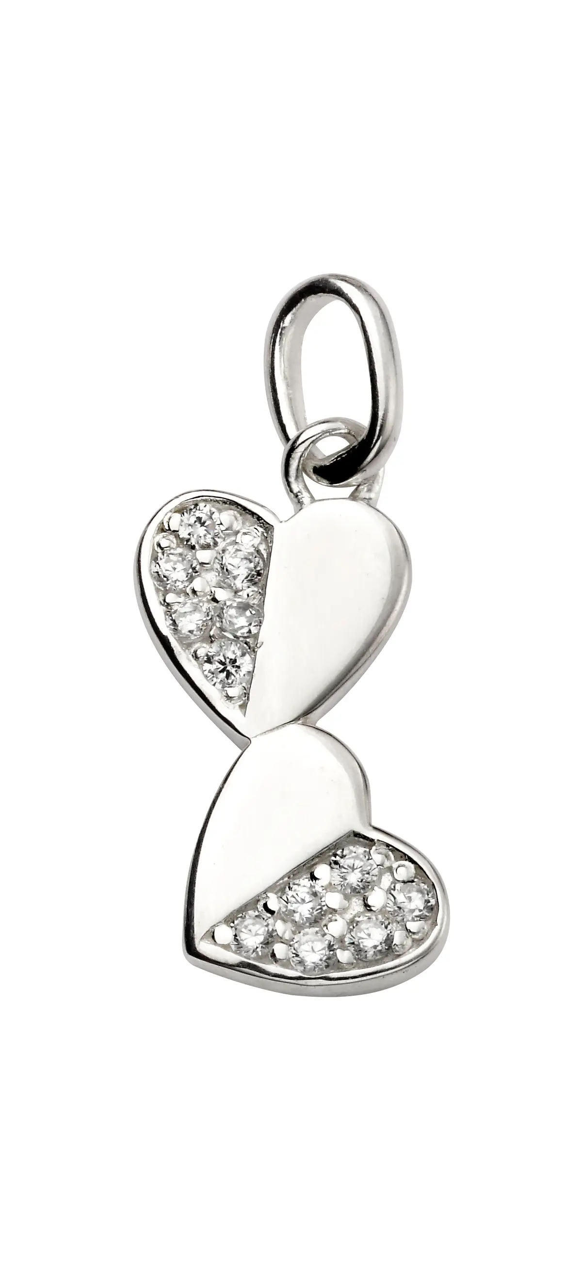 An elegant heart pendant necklace crafted in sterling silver with a polished finish. The half drop pave heart shaped pendant features 6 dazzling cubic zirconia stones for added sparkle. Matching earrings available. Chain length. Comes in a recyclable presentation gift box.