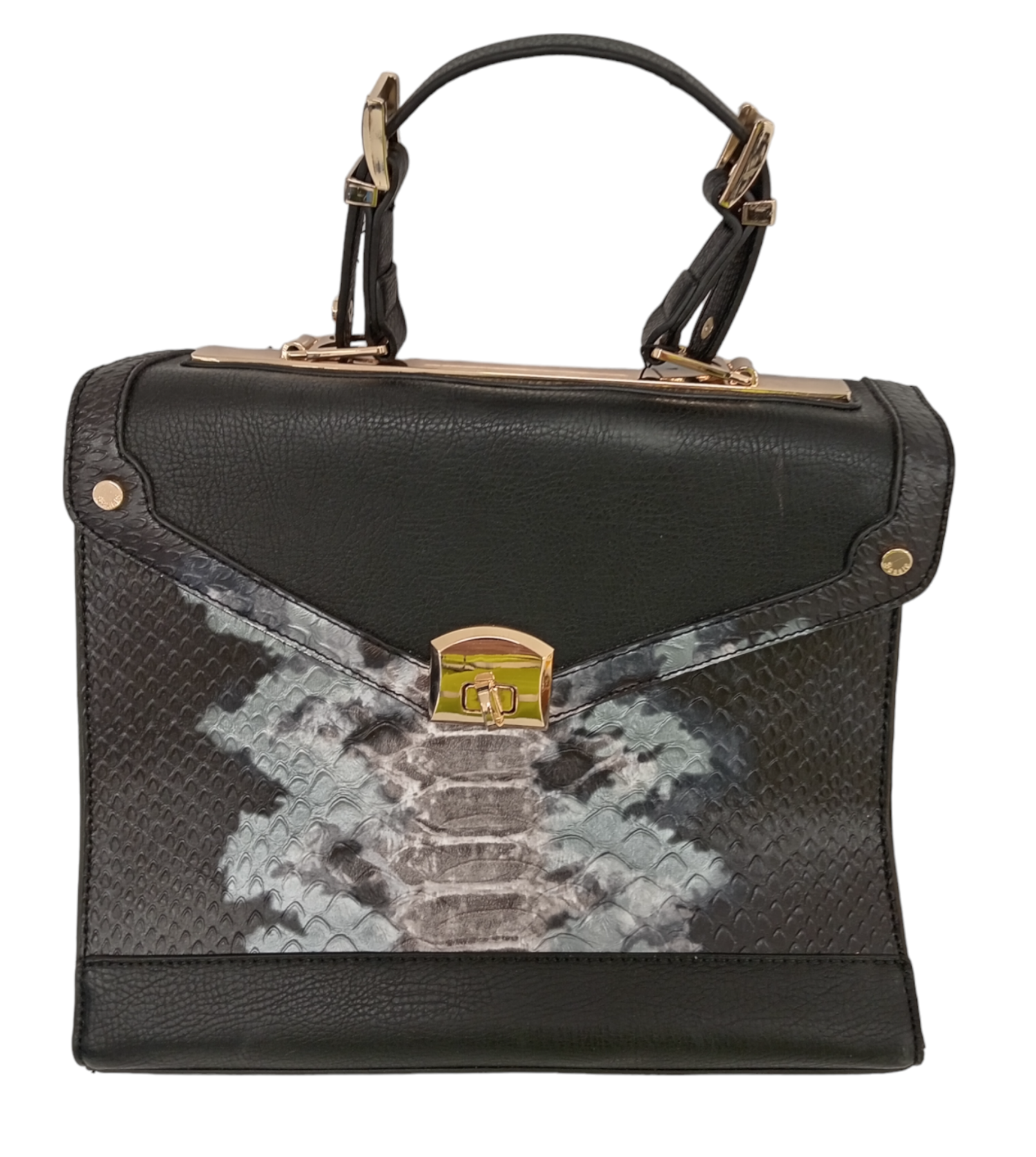 BESSIE COUTURE Ladies UK Size Large Black Croc Detailed Hand Bag