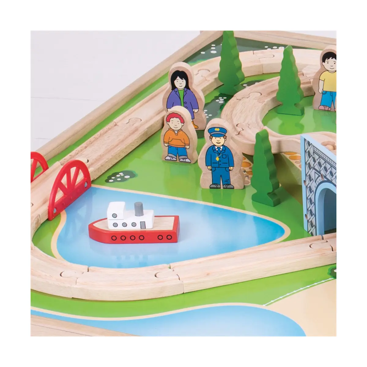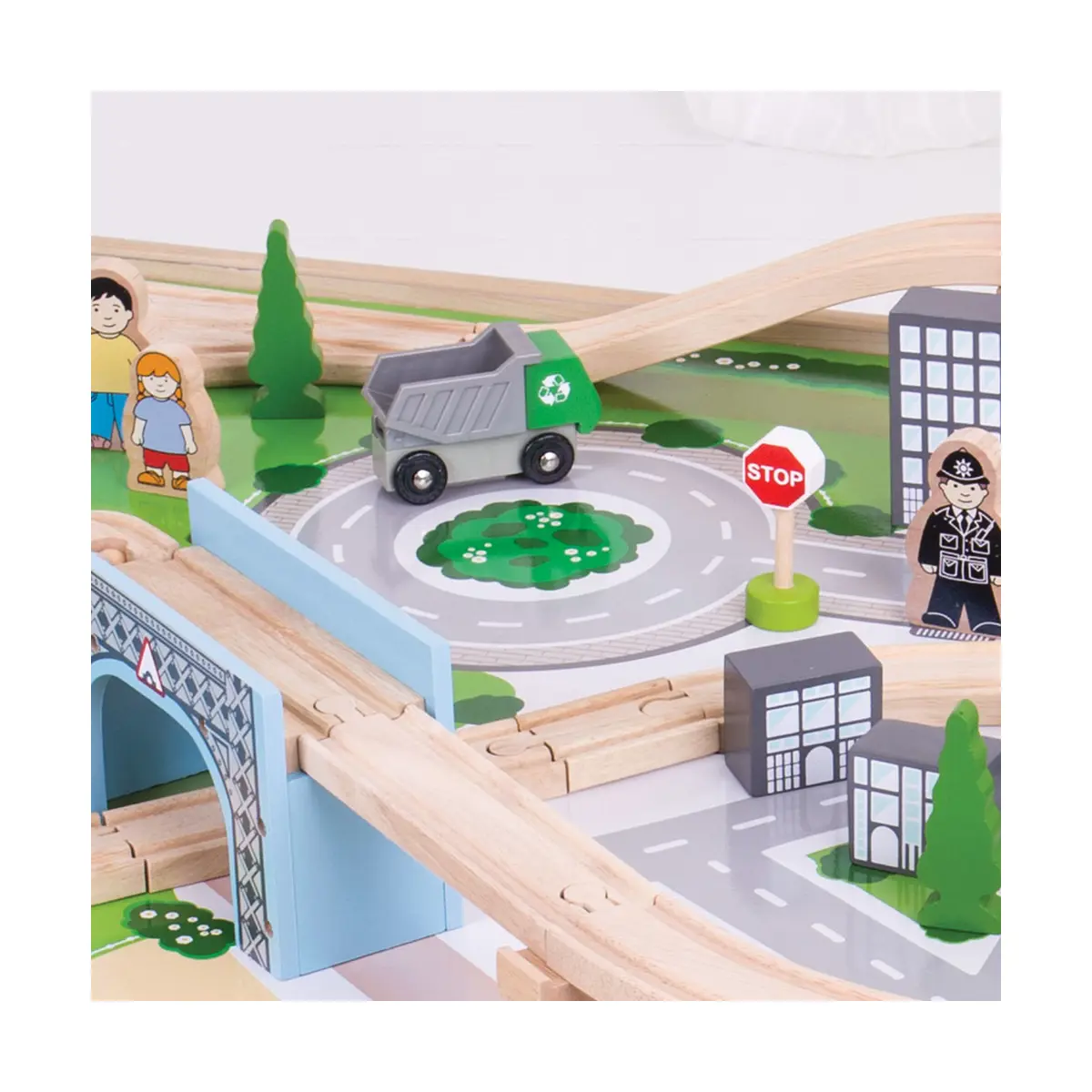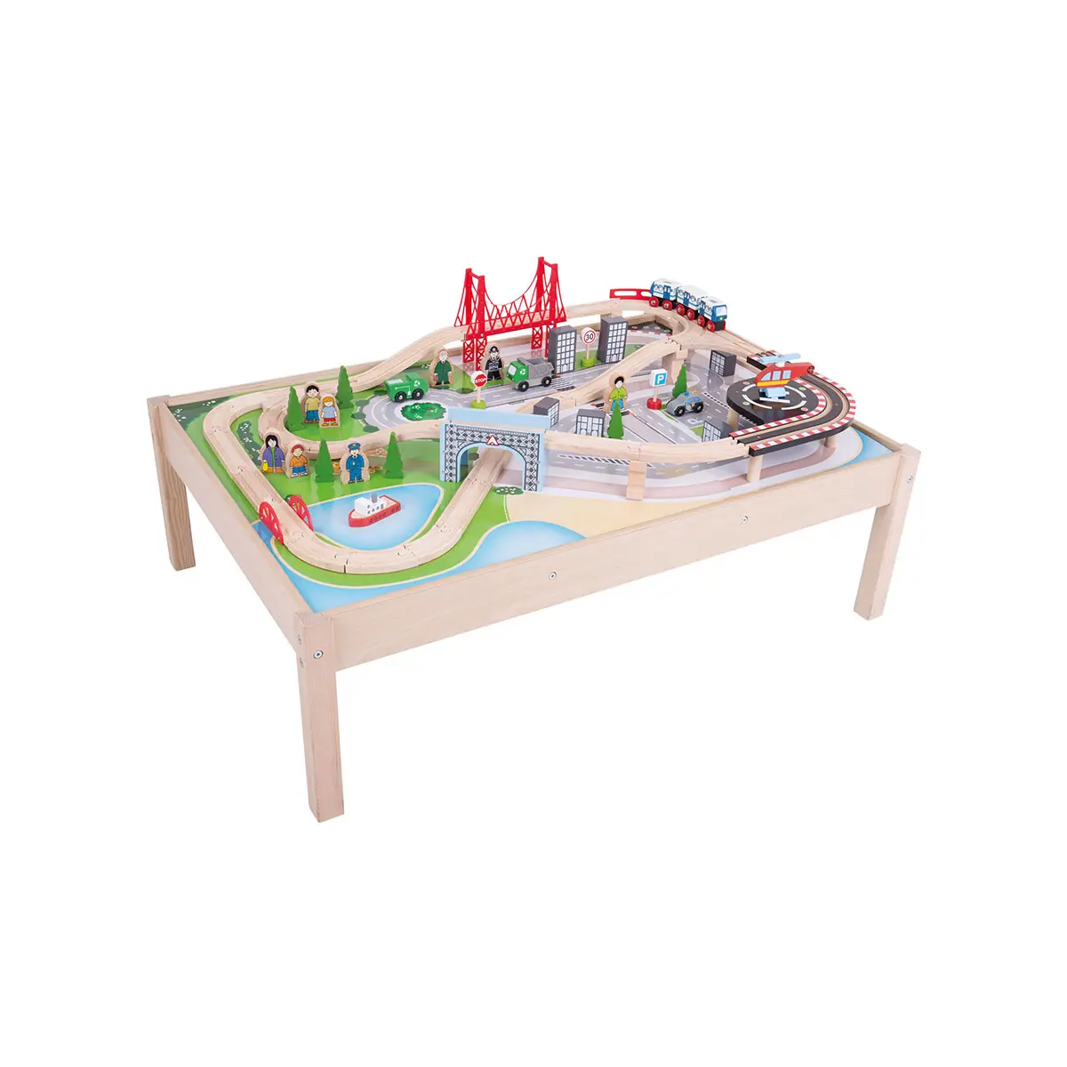 Bigjigs City Wooden Train Set and Table - 59 pc Set