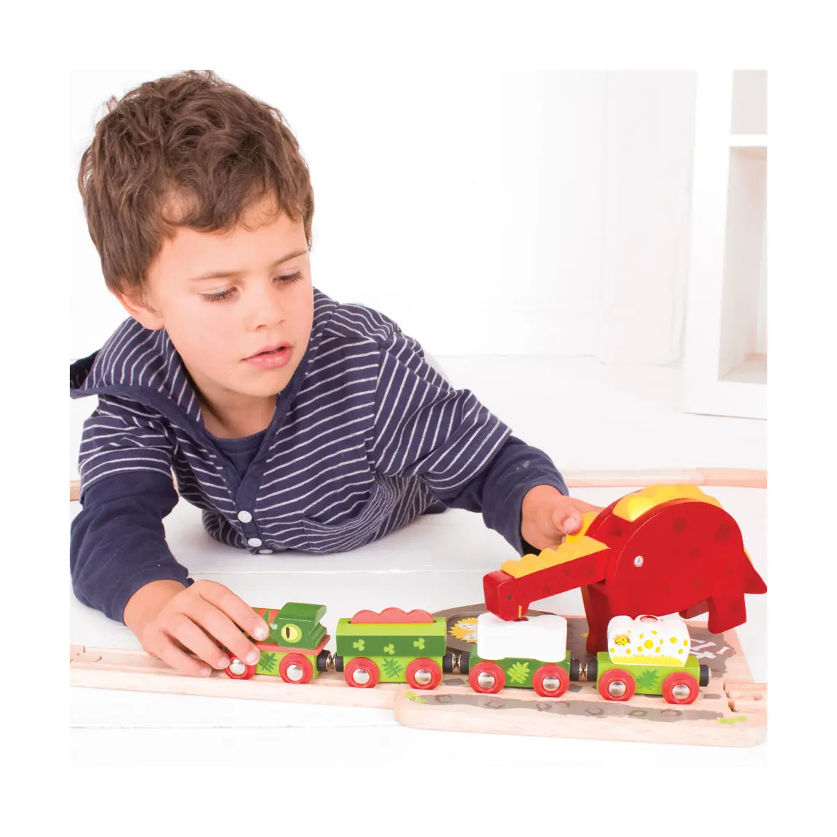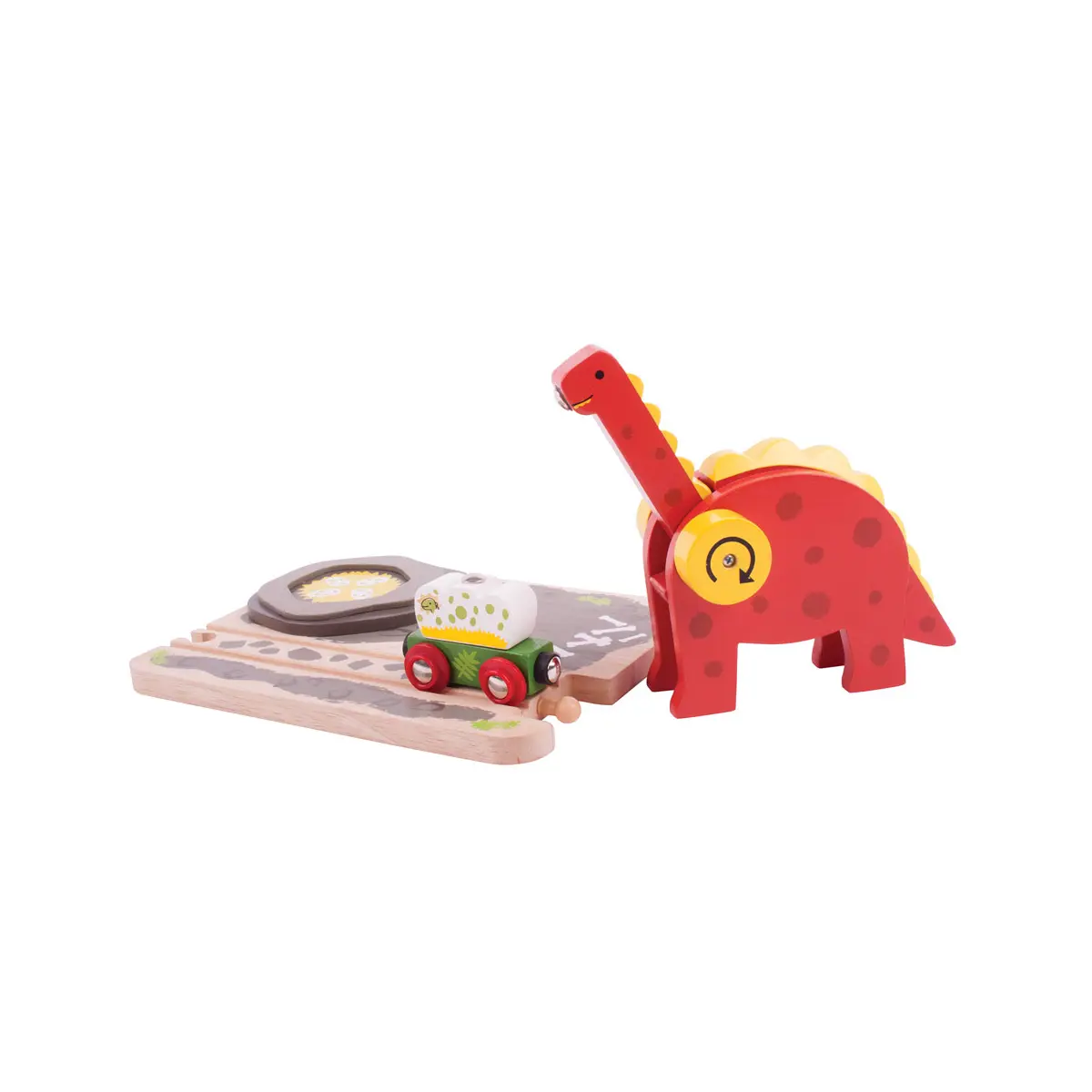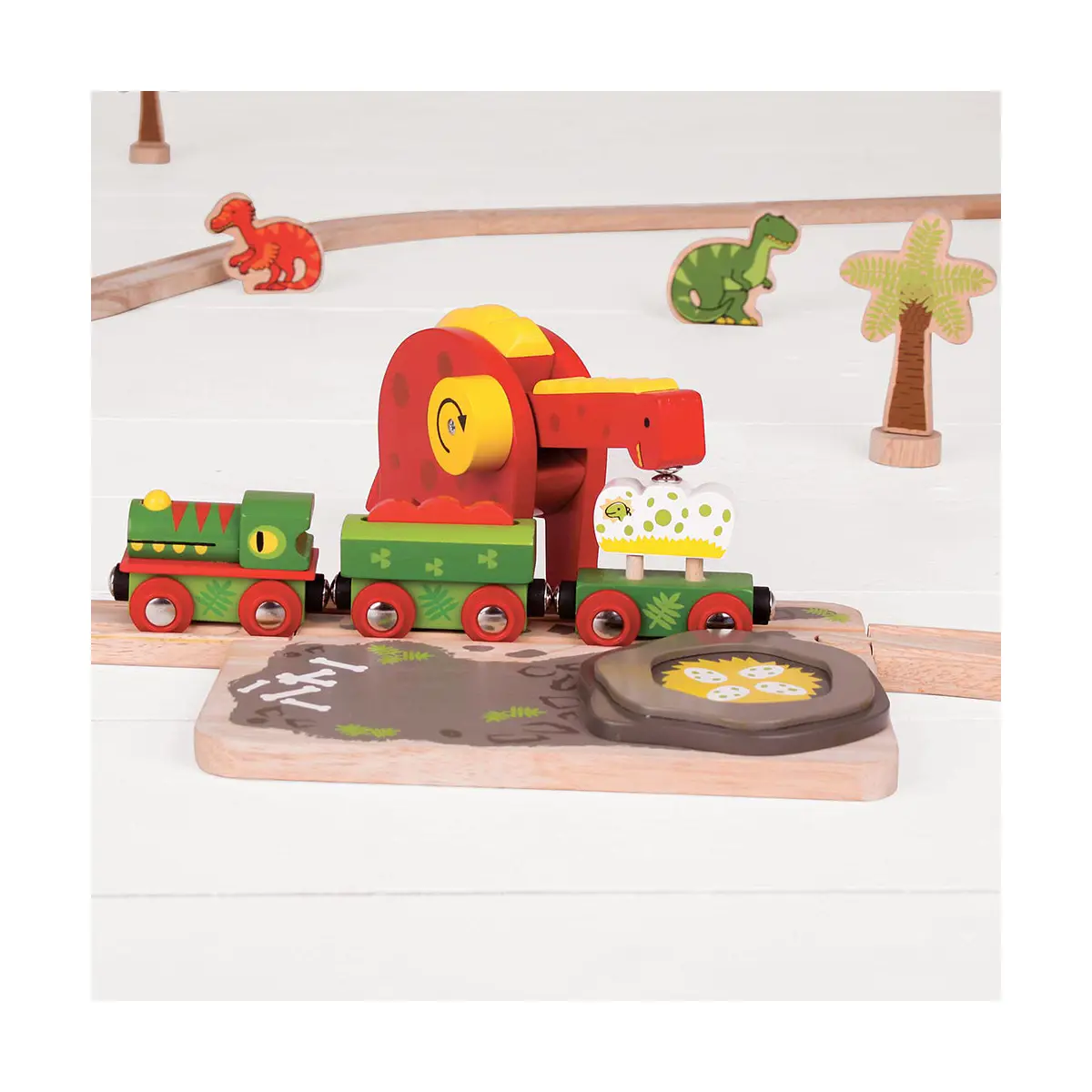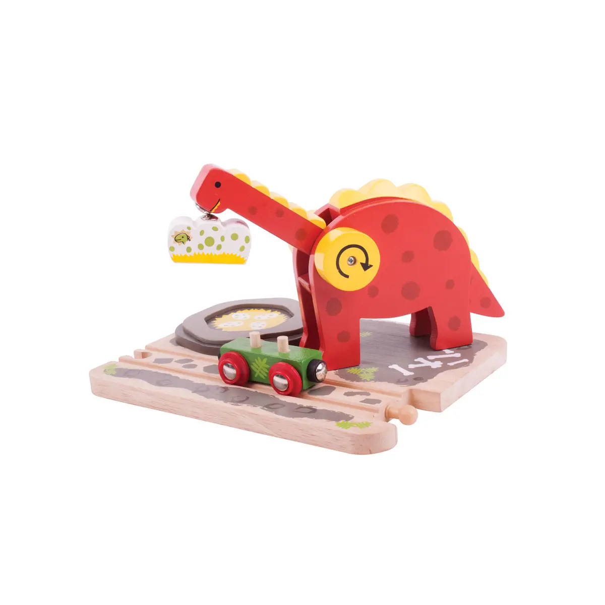 Product features: Working dinosaur toy crane that can lift eggs up and down 13cm tall Compatible with most other major wooden railways 3 years +