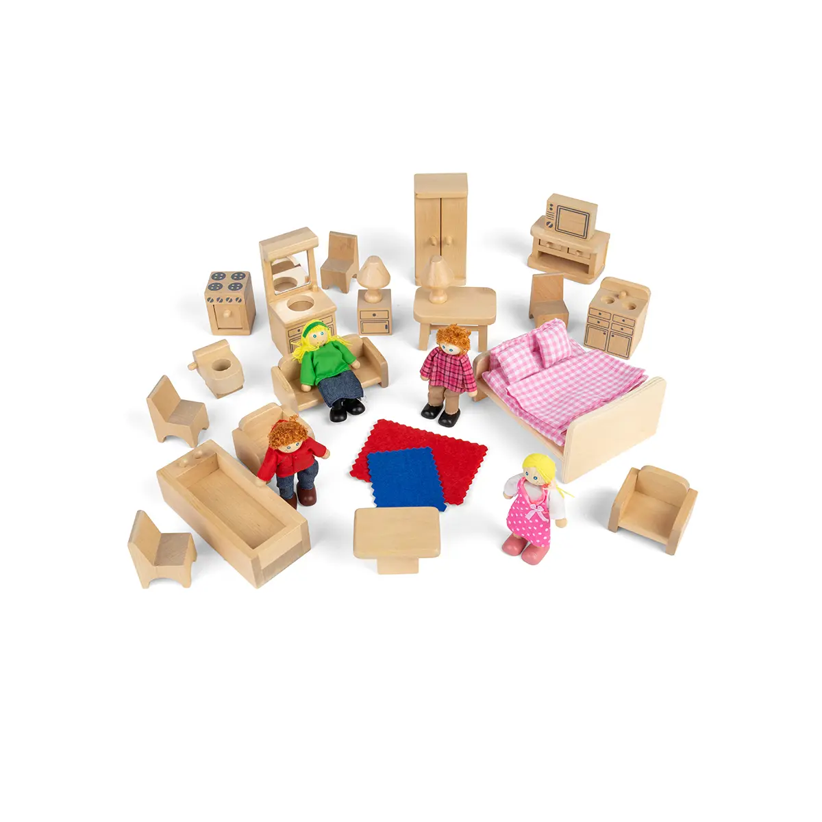 Bigjigs Doll Family and Wooden Furniture 26 pc Set
