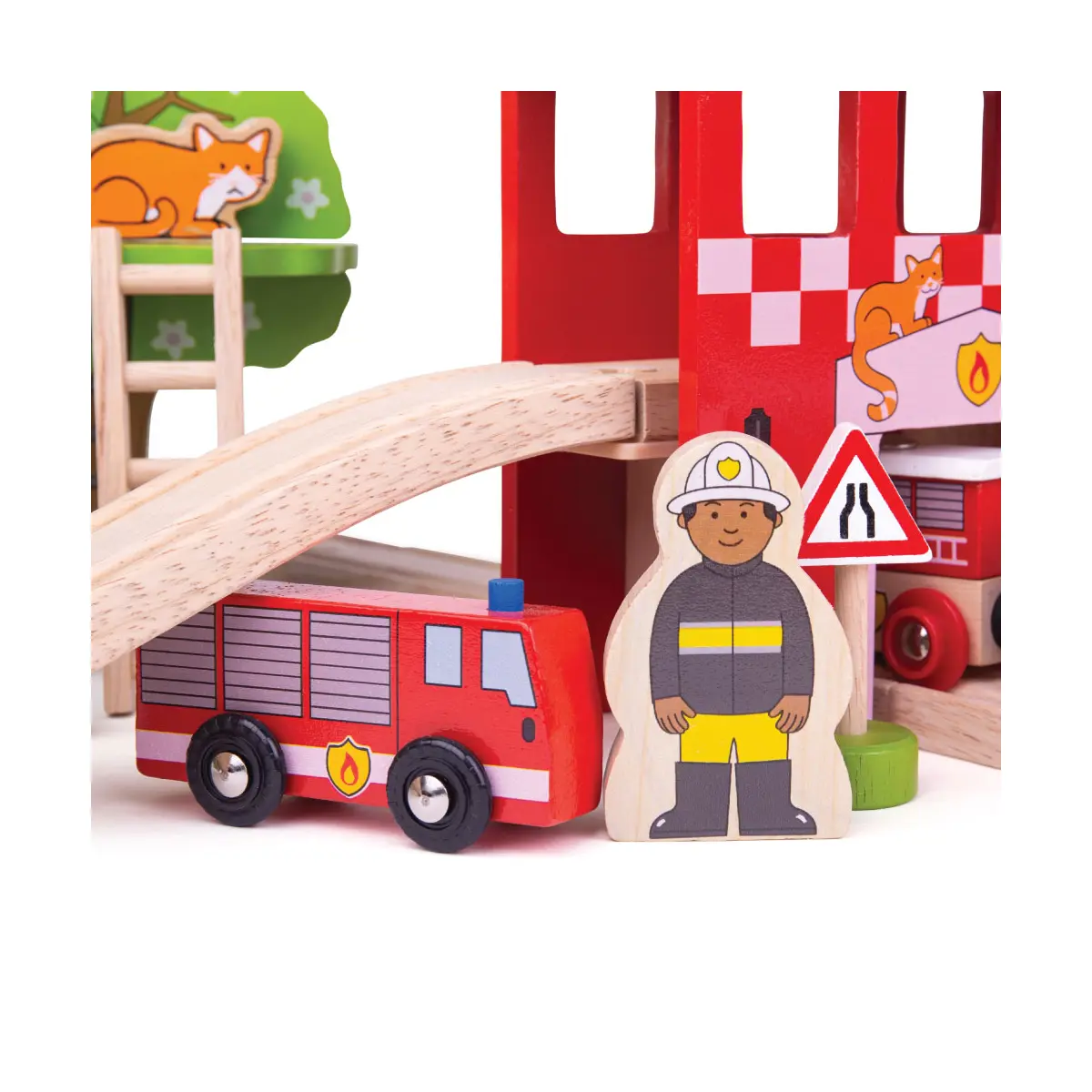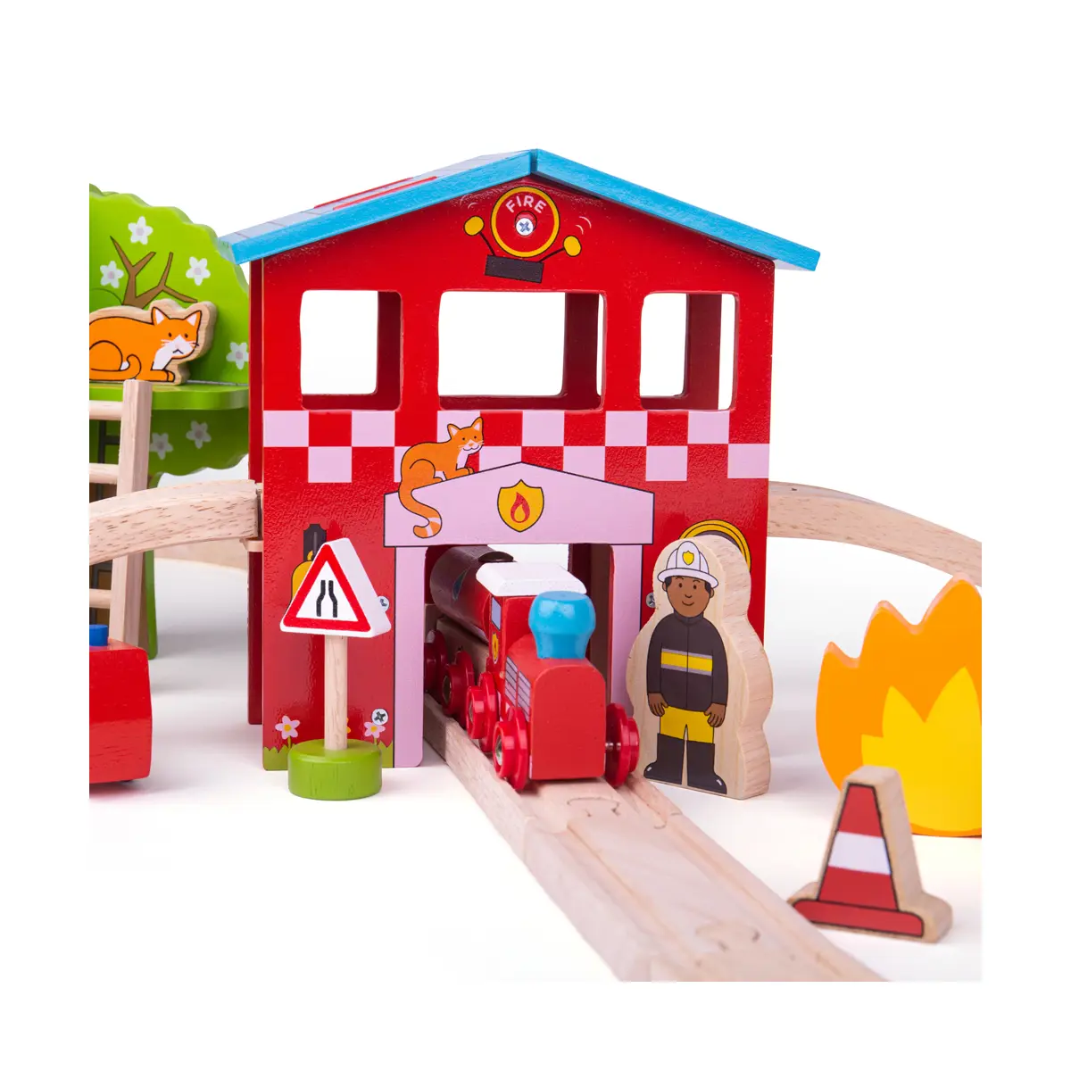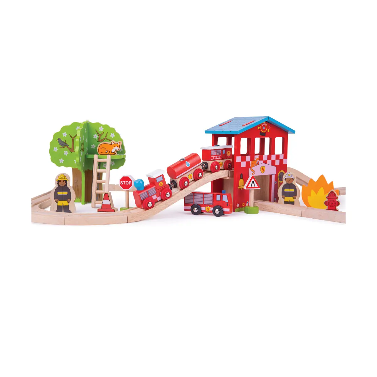 Bigjigs Fire Station Wooden Train Set - 39 pcs