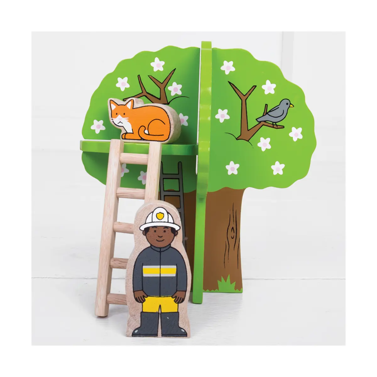 Race to the rescue with the Fire and Rescue Train Set! Whether your little one is fighting fire or rescuing the cat stuck in the tree, they can race to the emergency using the fire rescue train and carriages with removable loads. Speed through the fire station tunnel, past the road signs and straight to the emergency where two firefighters are available to climb the ladder or use the fire hydrant to fight the fire!