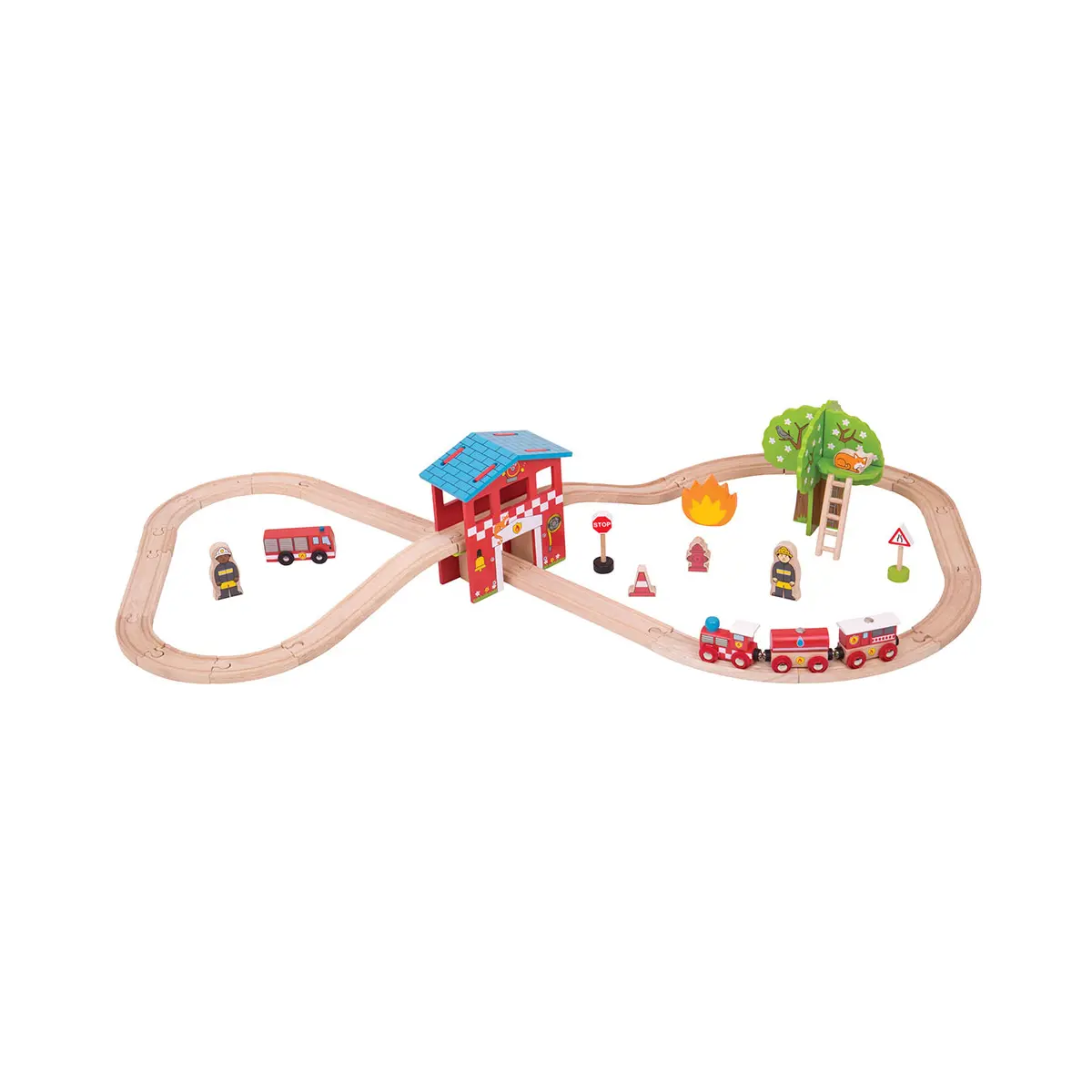 Product features: 39-piece Fire and Rescue train set 8cm L x 54cm H x 97.5cm W Most other major wooden railway brands are compatible with Bigjigs Rail 3 years +