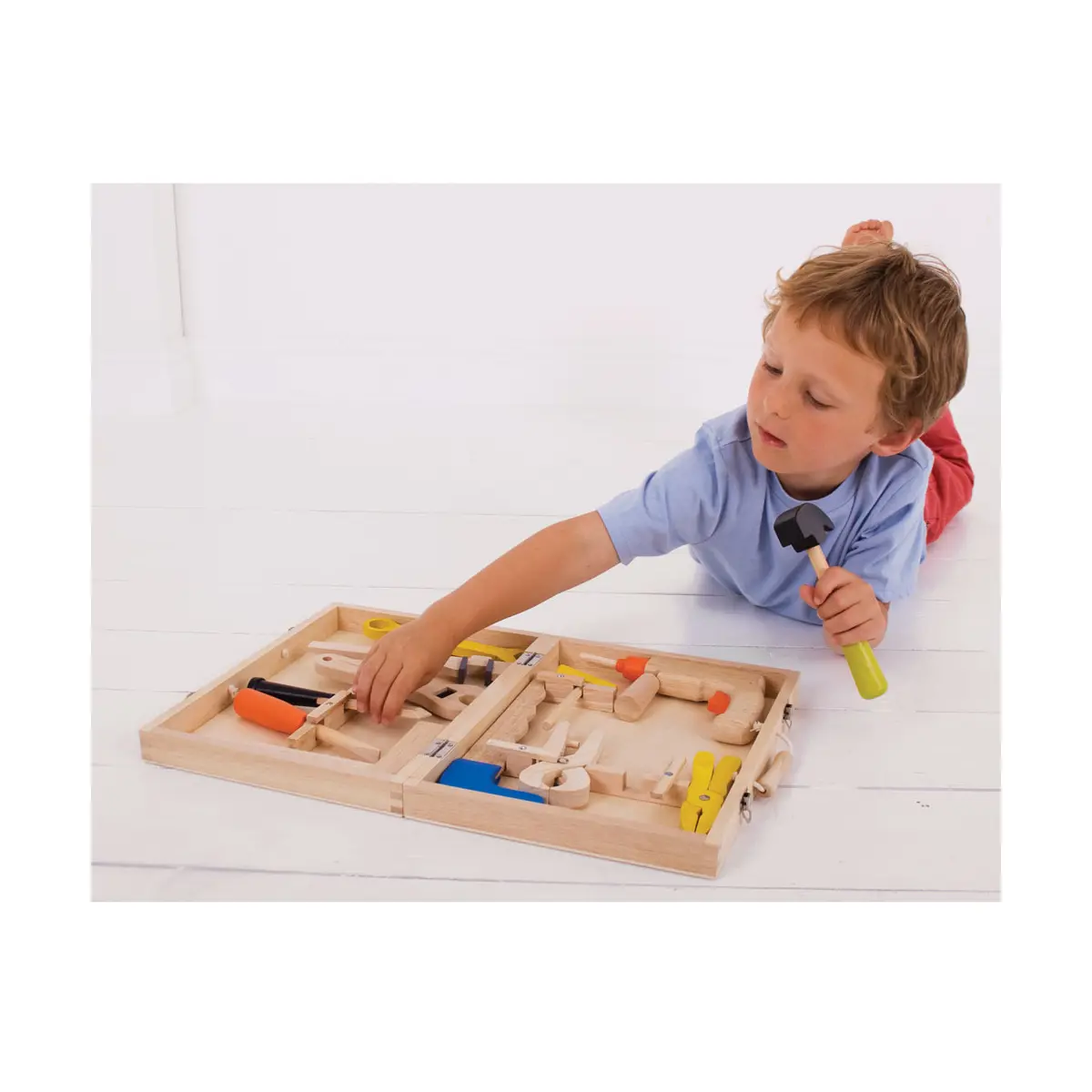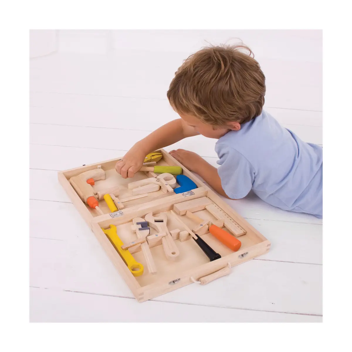 Bigjigs Kids Carpenters Tool Box and Tools - 13pc Set
