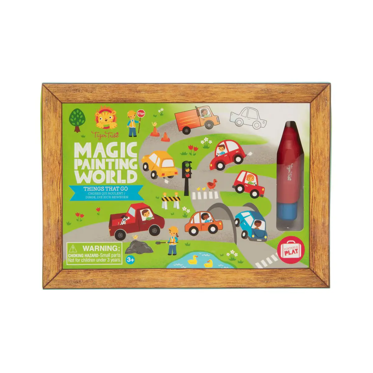 See your kiddies transform into magical artists with Tiger Tribe’s Magic Painting World - Things That Go kids paint set! Kids simply need to fill their magic paintbrush with water to unveil the hidden vehicle illustrations with every brush stroke. This children’s paint set comes with one chunky paintbrush and four colourful transport paintings that are waiting to be painted and discovered! Paint over the blank picture board with the water-filled paintbrush to reveal each travel scene. When the painted scene has dried, it goes back to white and hides the secret vehicle world and can be painted multiple times. Each illustration board has things for little rascals to find and count as they paint, encouraging numeracy and concentration skills. These kids paint sets are designed to be taken on-the-go and are great for portable play. Comes in a lightweight sturdy storage box so there’s no mess and no stress! Things That Go paint set product features: 1 paintbrush 4 blank illustration boards ready to be painted Handy storage box Suitable for 1 years + Weight: 0.09 kg