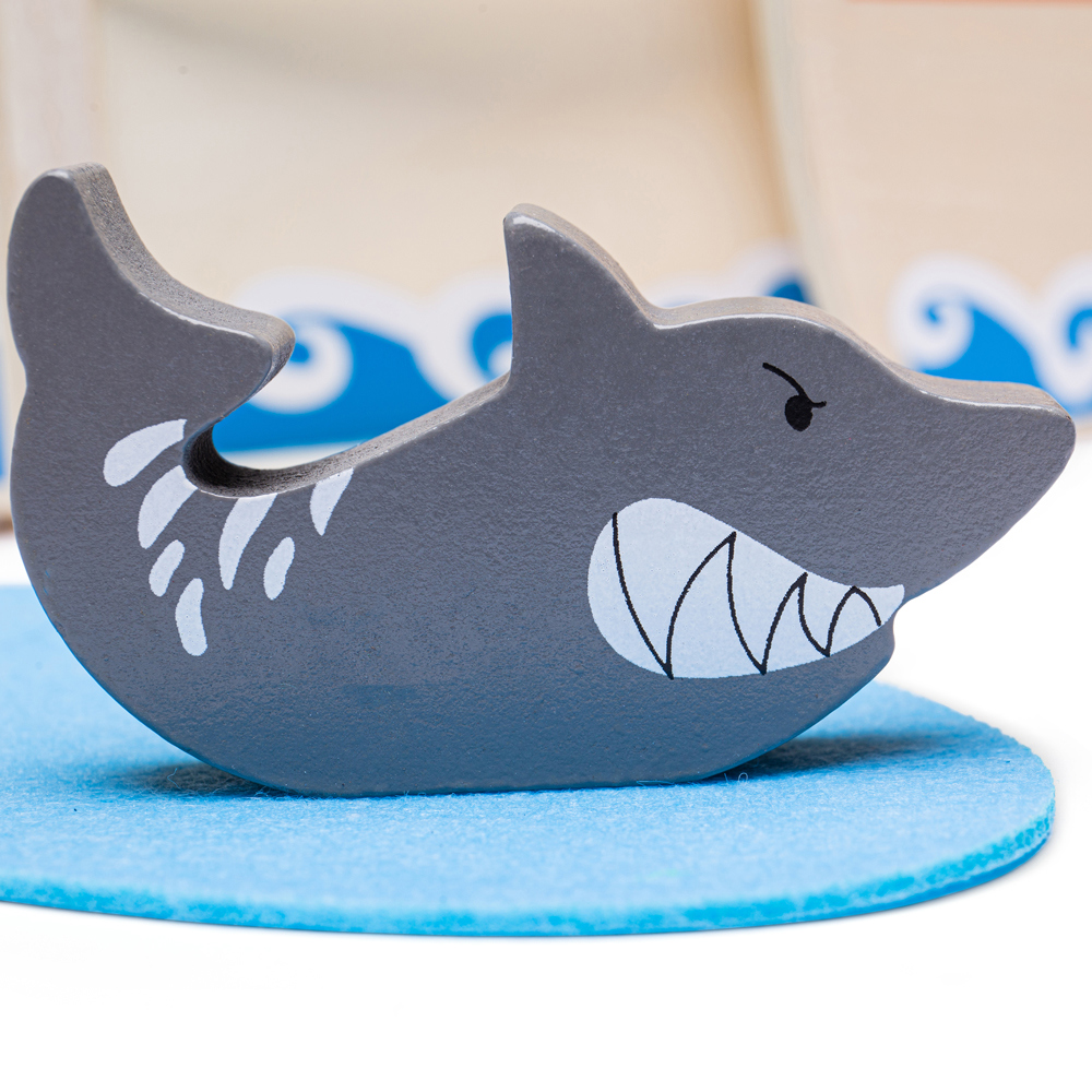 Ahoy, Captain! Jolly sailors will adore this wooden Mini Pirate Ship Toy, supplied complete with a captain, two pirates, boat, anchor, treasure chest and even a shark! This wooden pirate ship comes with a string handle and secure clasp so it is always ready to travel with your little one and all of the play pieces can be stored safely inside. Made from high-quality, responsibly sourced materials. Conforms to current European safety standards. Consists of 10 play pieces.