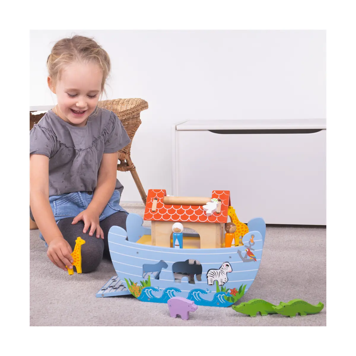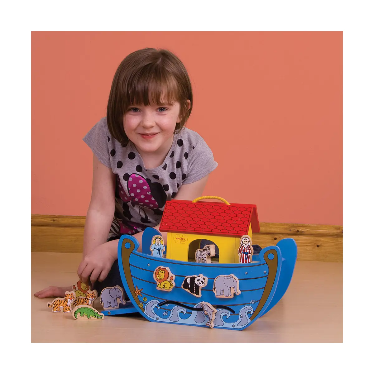 Product features: Colourful 16-piece wooden Noah's Ark toy Animals attach to the side of the ark by magnet and some board through slots on the side A sturdy carrying handle makes this a great toy for play at home or travelling. 3 years + 16cm L x 25cm H x 34cm W