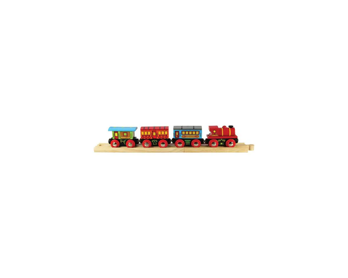 This traditional wooden Passenger Train is brightly coloured and complete with a guards van to ensure that everything's present and correct during the journey. Supplied complete with two pieces of wooden Bigjigs Rail track. Magnetic couplings ensure compatibility with all other engines and carriages in the Bigjigs Rail range.