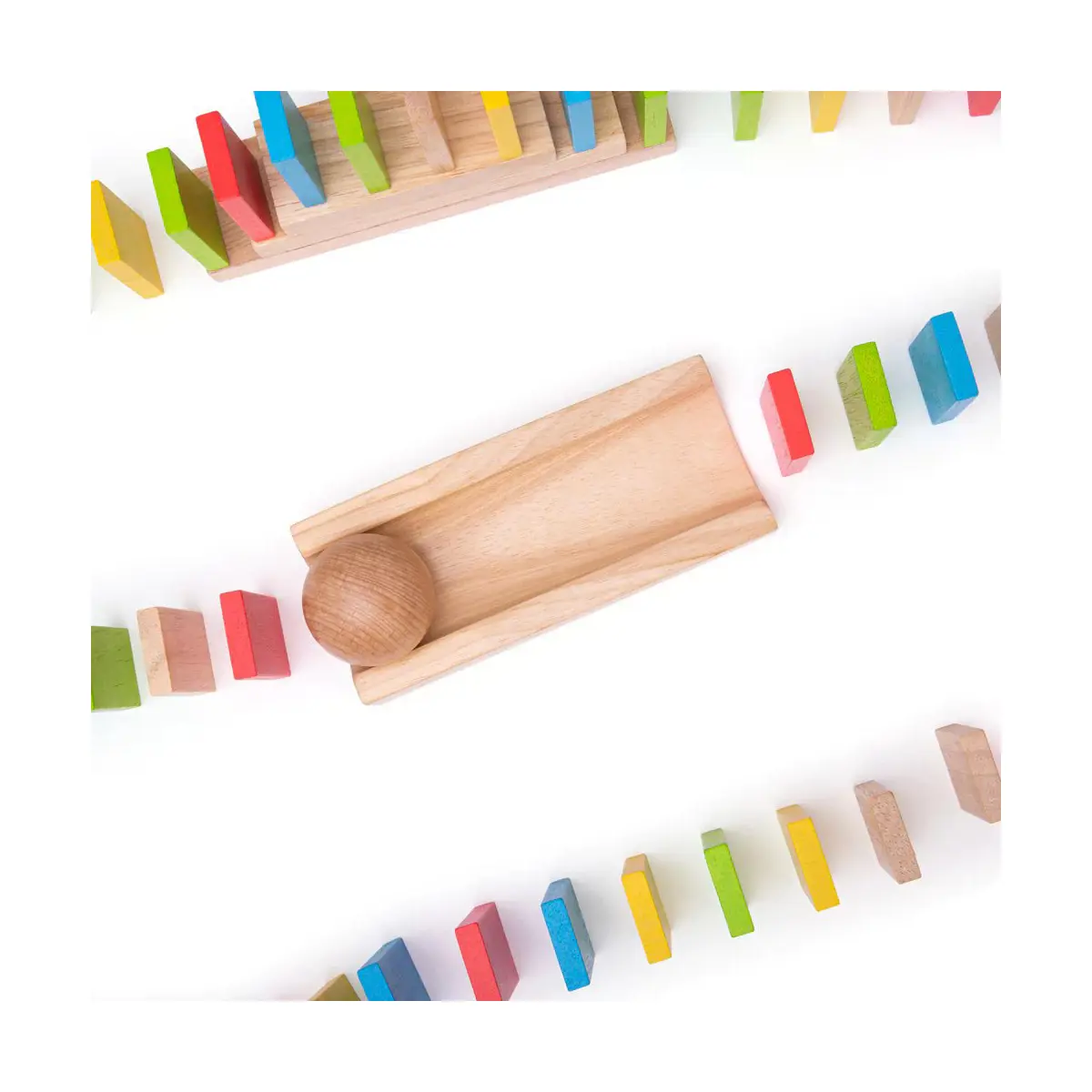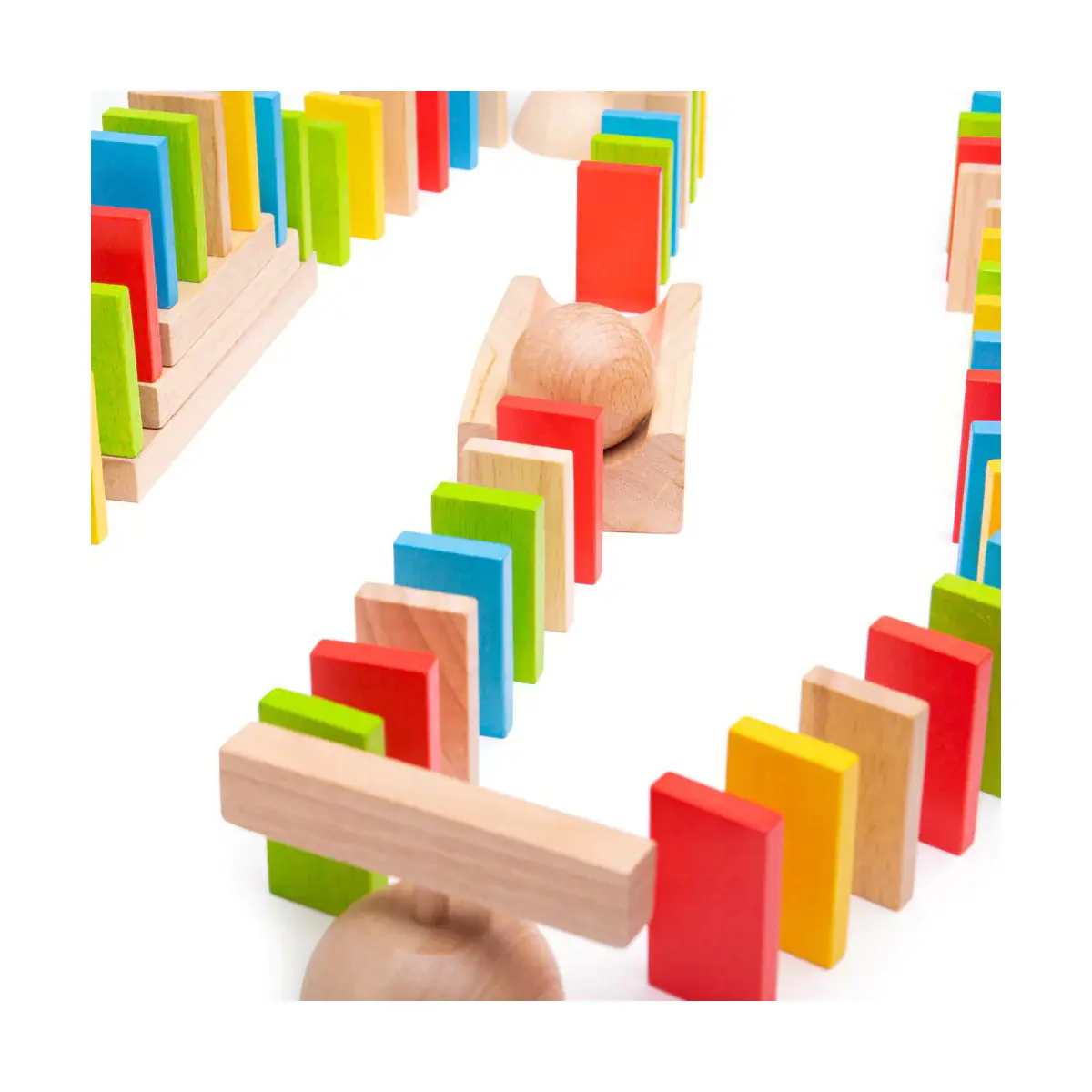 Domino Run is an extensive wooden domino set that will keep children, and even adults, entertained for hours on end.