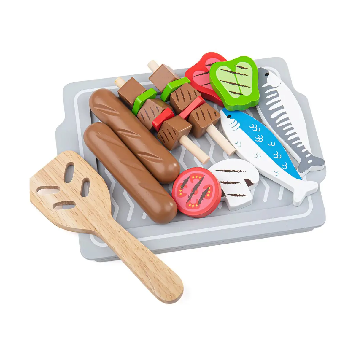 Ideal for imaginative summer play, kids can grill, cook and roast their wooden play food outside - just like Mum and Dad do! With no screws required, this wooden BBQ toy is easily assembled in seconds. When playtime is over, the wooden play food can be neatly stored under the wooden grill.