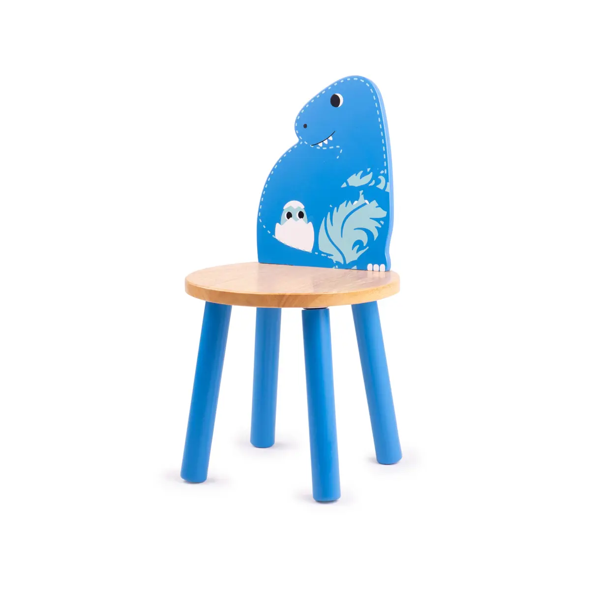 This colourful T-Rex Chair features a natural wood seat and a blue back shaped like a Tyrannosaurus Rex dinosaur. This vibrant dinosaur chair is the ideal height for young children to perch on. Makes a great addition to a bedroom or playroom.