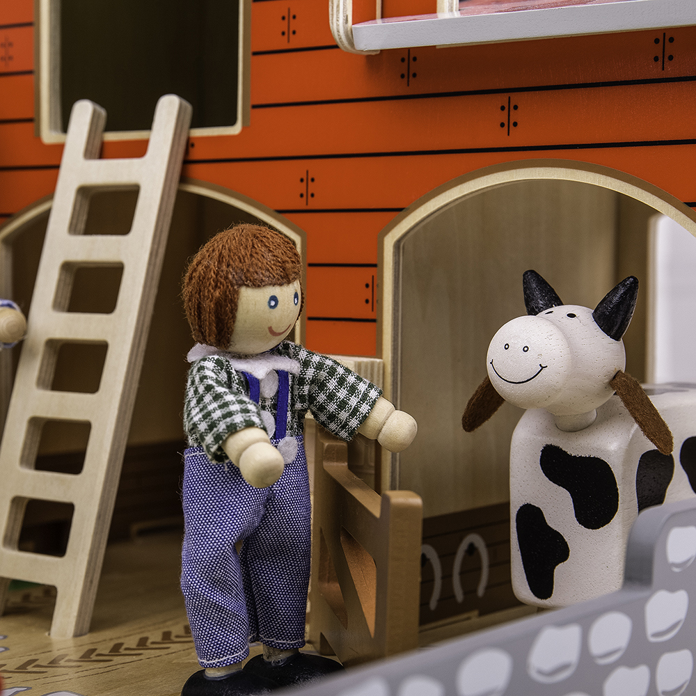 Are you ready for a busy day on the farm? There's lots to do! Cobblestone Farm comes complete with a wooden baseboard, working gates, a stable, hayloft, a duck pond and space to park a tractor. A realistic wooden toy farm! With our toy farm set, children will love setting up the scene, putting farm animals (sold separately) in their homes and helping the farmers maintain the fields and crop. The farmer can get access to the hayloft by using the removable ladder and secure the animals in their pens with the movable gates. Removable roof panels allow easy access into the barn and ensures every part of the playset is accessible.