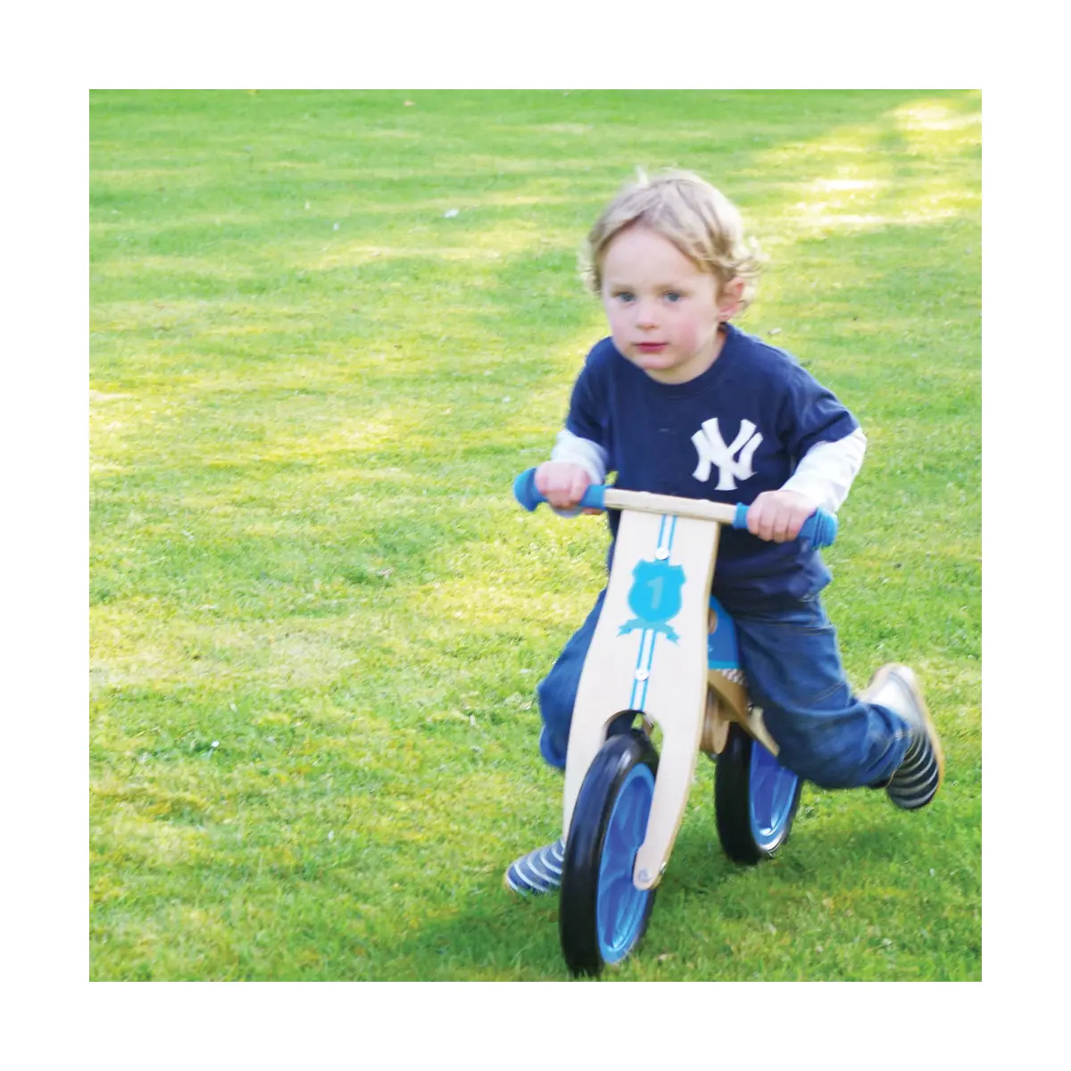 Product features: Wooden balance bike with blue detailing No pedals needed - just push forwards and go an ideal way to improve balance while further developing hand/eye coordination 33cm L x 52cm H x 16.5cm W 3 years + 25kg weight limit