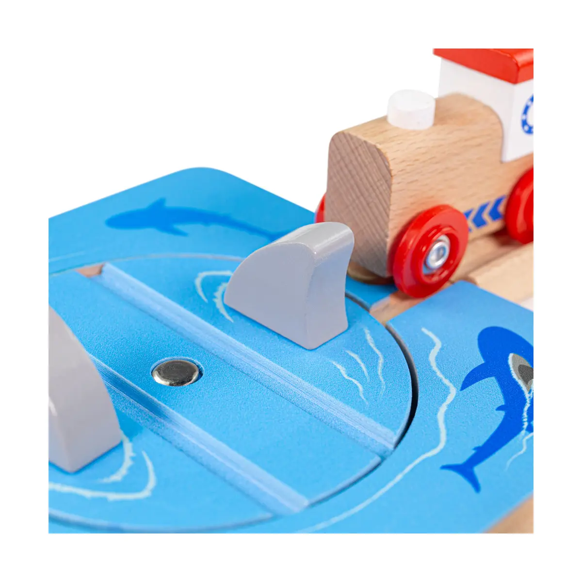 Bigjigs Wooden Shark Attack Train Track 4pc Set
