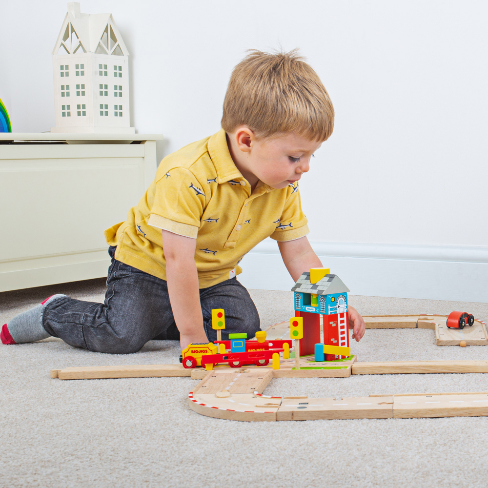 This colourful yet detailed wooden Signal Box helps youngsters to understand signals and safety around trains. A fun wooden train accessory! Red barriers and traffic light signals ensure road users are safely stopped as toy trains thunder through and when these barriers are up, the train can be held behind the yellow barrier to ensure a safe passage for road users. A Bigjigs Road and Rail link item!