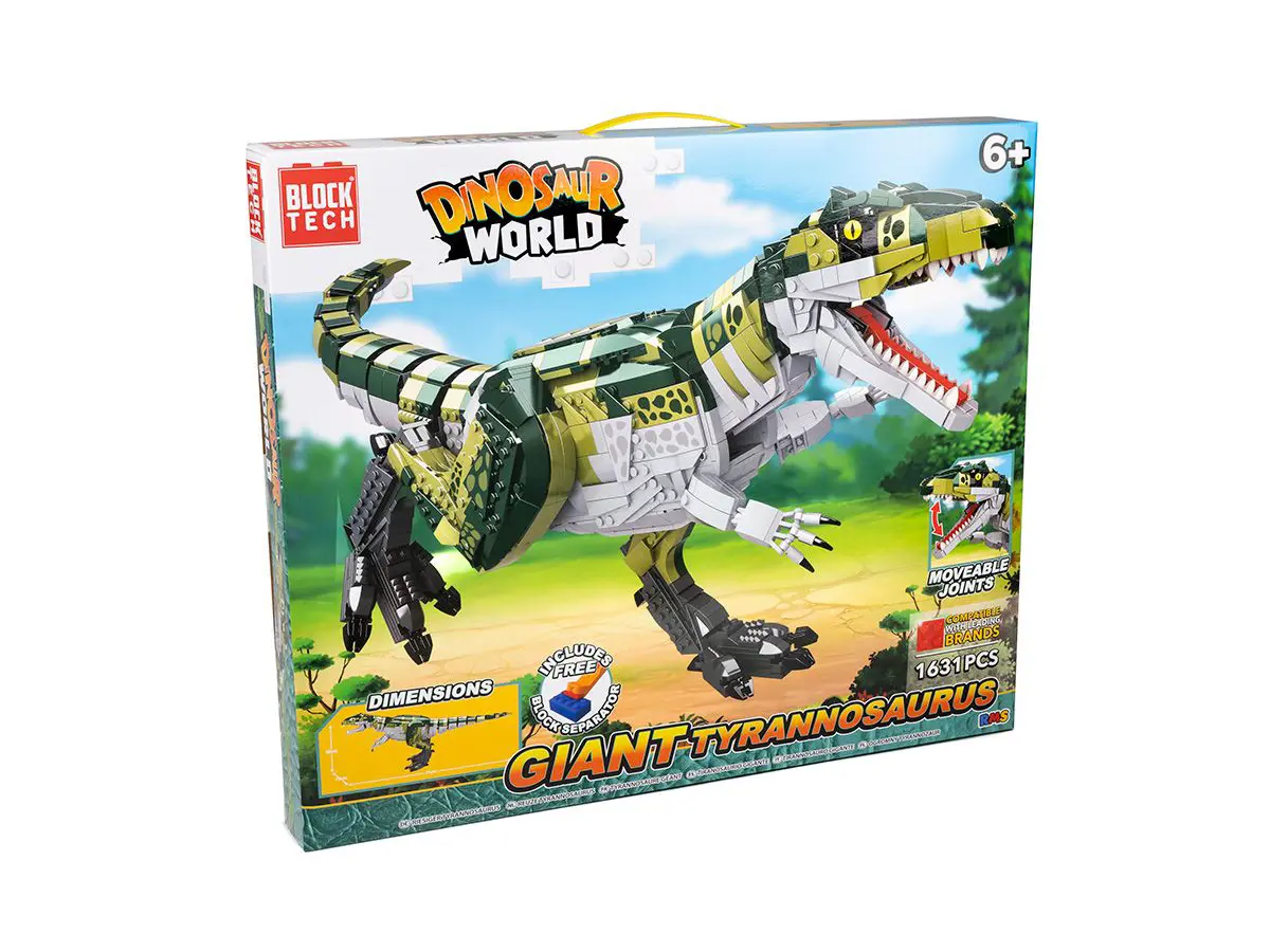 Get ready for a prehistoric adventure with the Block Tech Giant Dino T-Rex! With a whopping 1,631 pieces, this exciting set lets kids build a detailed, poseable T-Rex, complete with moveable joints for lifelike dino action.