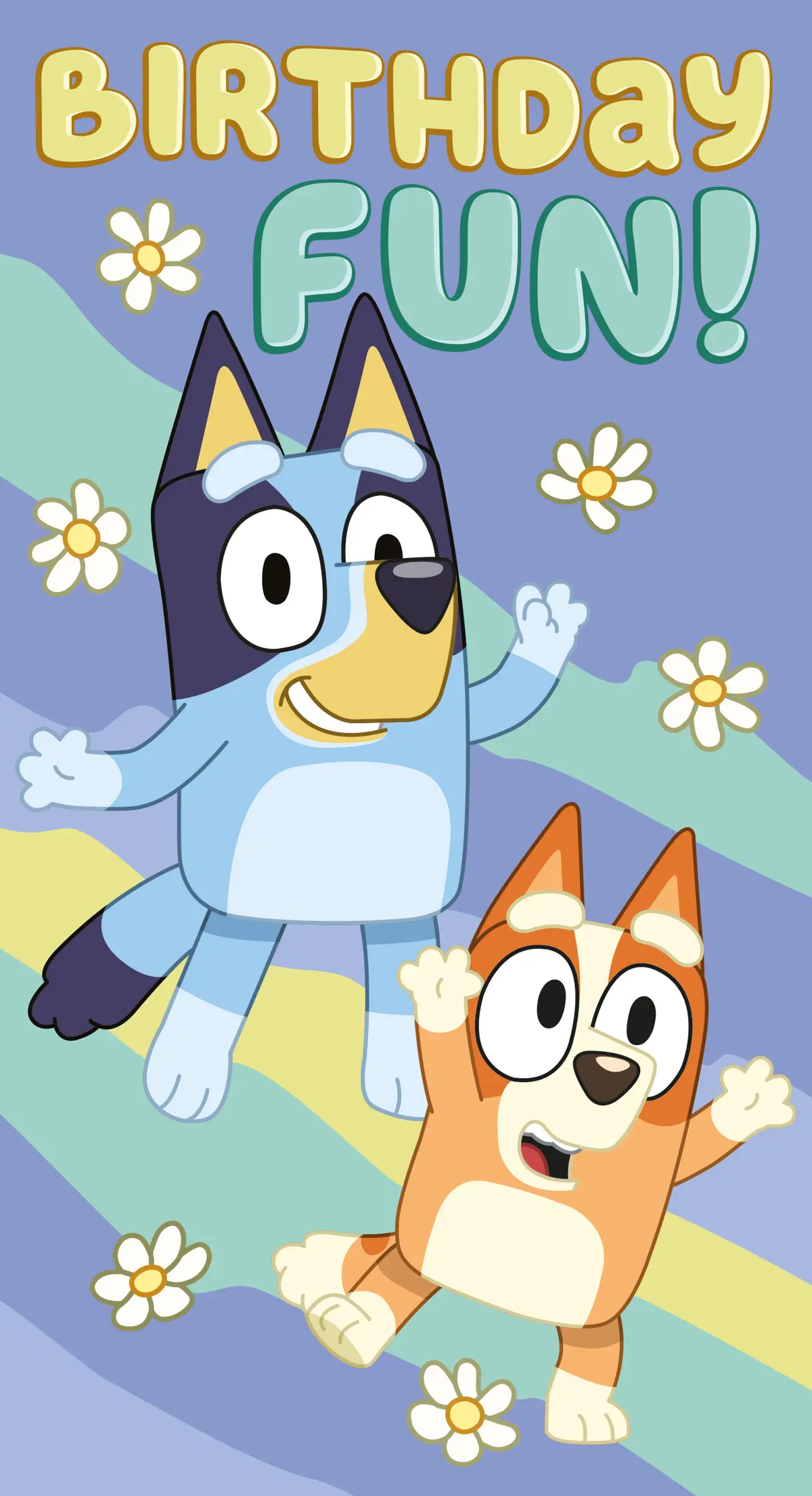 Bring big smiles and plenty of giggles to their special day with this adorable Bluey Children's Birthday Card. Featuring Bluey and Bingo in a fun, playful pose surrounded by sweet daisies and colourful stripes, it is bursting with joy from the very first glance.